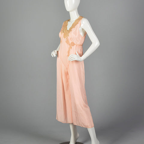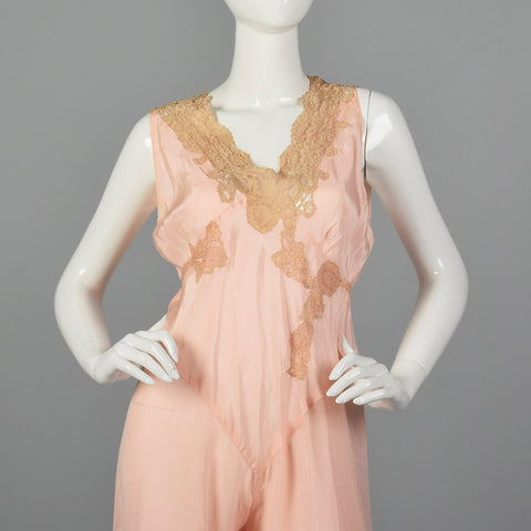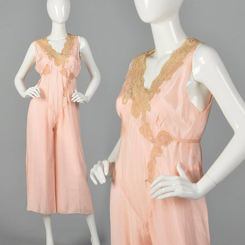1920s Pink Silk Jumpsuit Pajamas