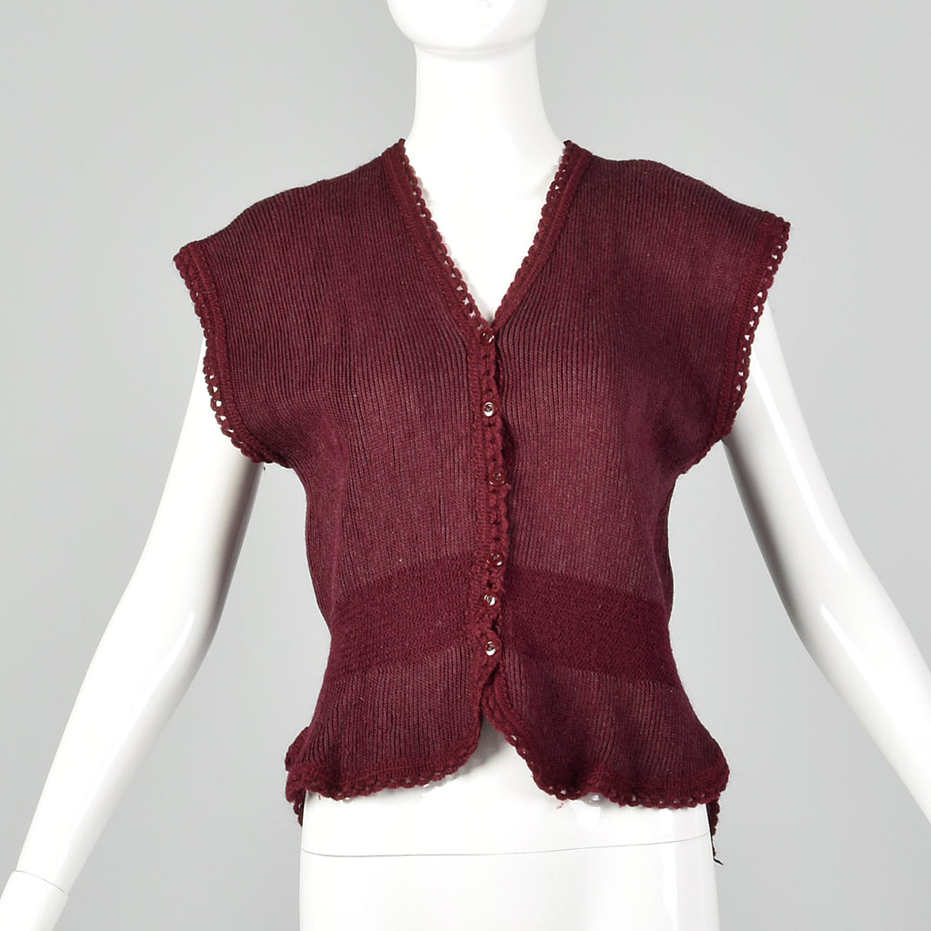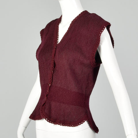 1930s Hug-Me-Tite Burgundy Sweater Vest