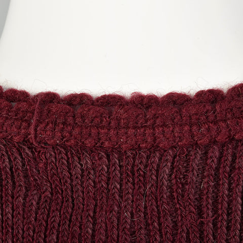 This listing is for one sweater vest. Textile is unmarked but feels like wool knit. Rich burgundy wool in an excellent v-neck cut. Lovely looped kn...