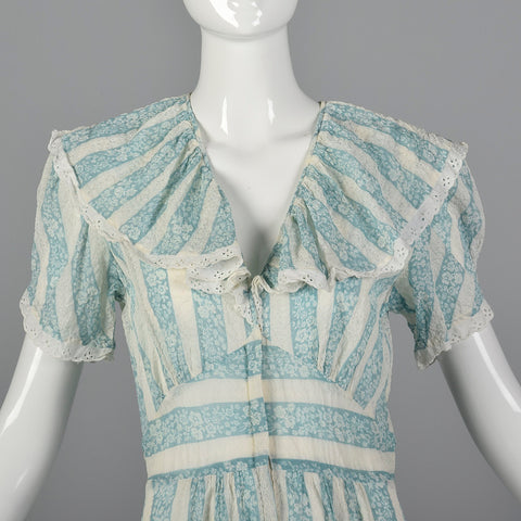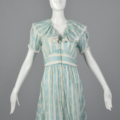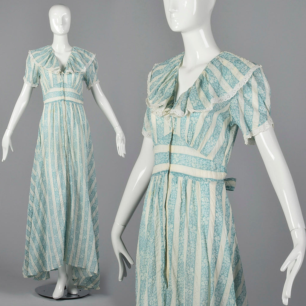 1940s Blue Floral Dressing Gown