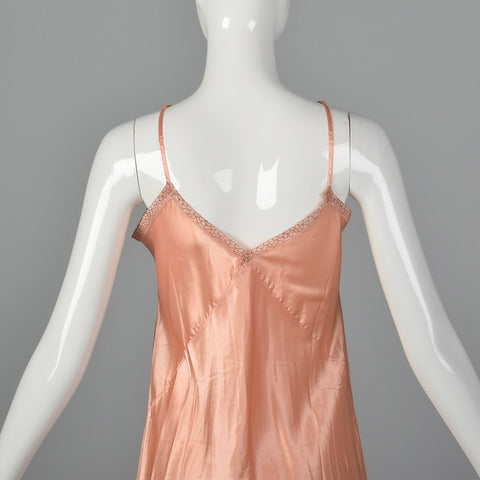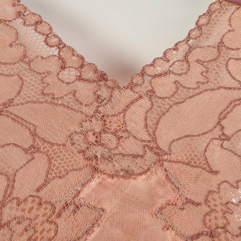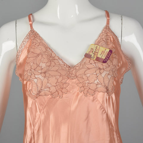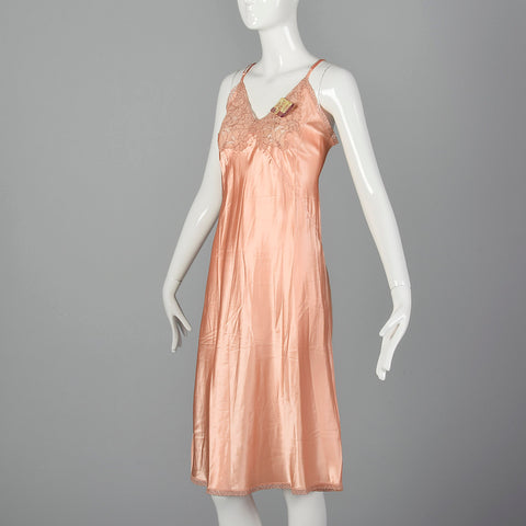 The textile of this slip is rayon in pink and is lightweight. This slip has adjustable straps, a lace bodice, and lace trim at the hem. There is so...