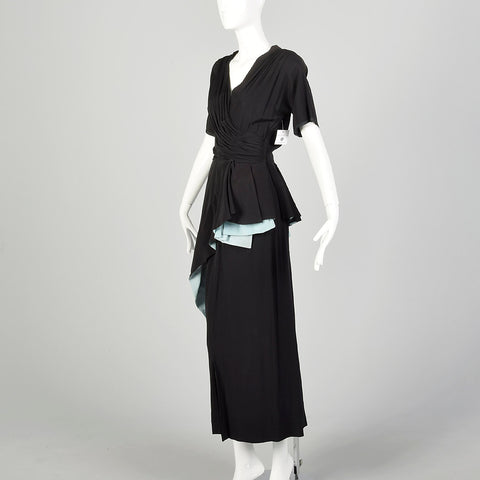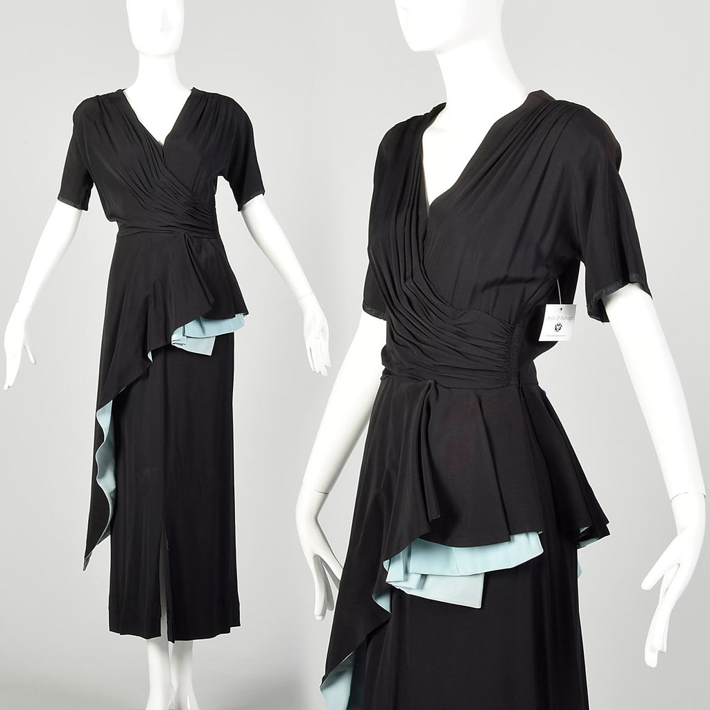 1940s Frank Starr Dress Evening Gown Formal Peplum Sash Rayon
