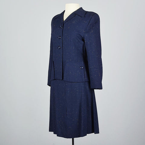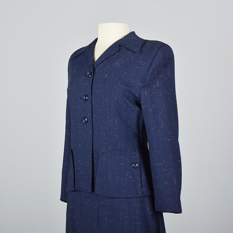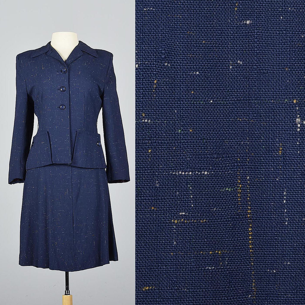 1940s Skirt Suit in Flecked Navy Fabric