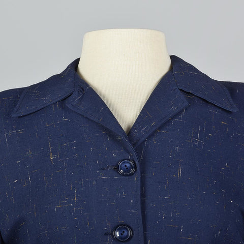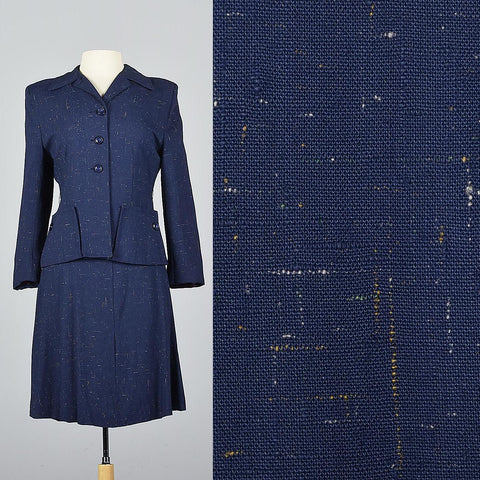 This 1940s skirt suit can also be worn as separates. Navy blue atomic fleck blazer with a fit and flare skirt is perfect for business or casual! Th...