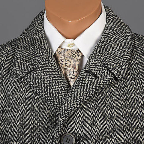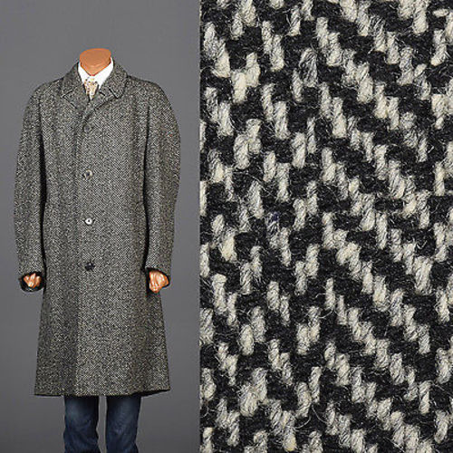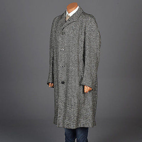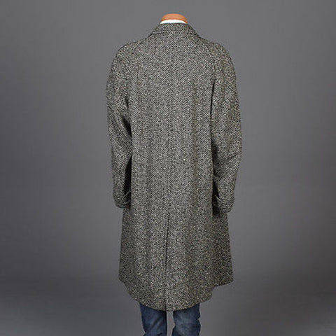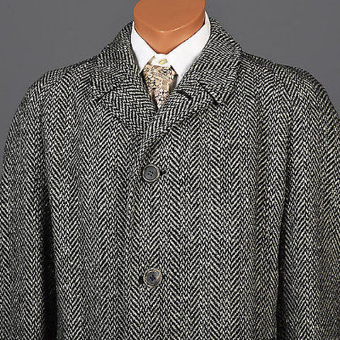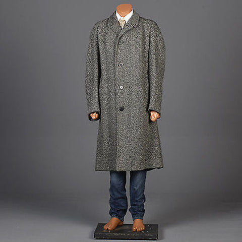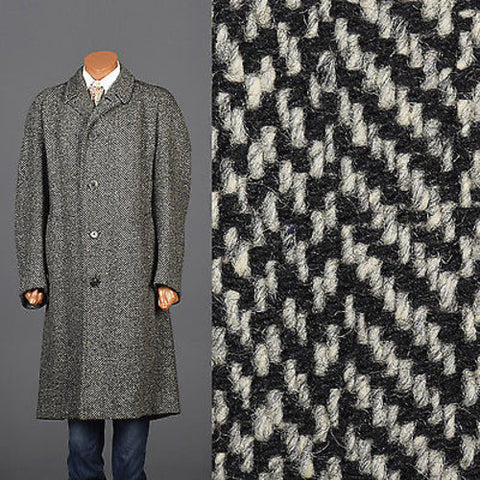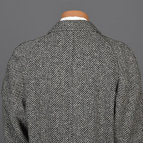 1950 Men's Irish Tweed Overcoat in Black & White Herringbone