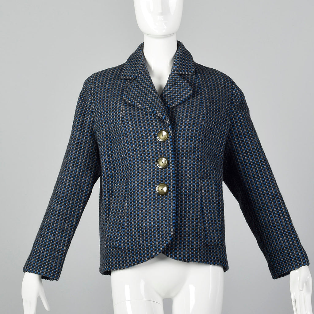 1950s Blue and Gray Tweed Jacket