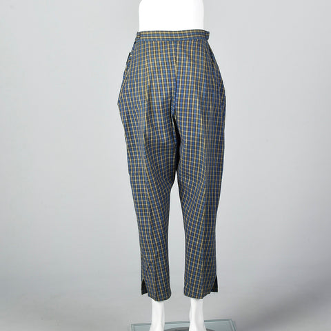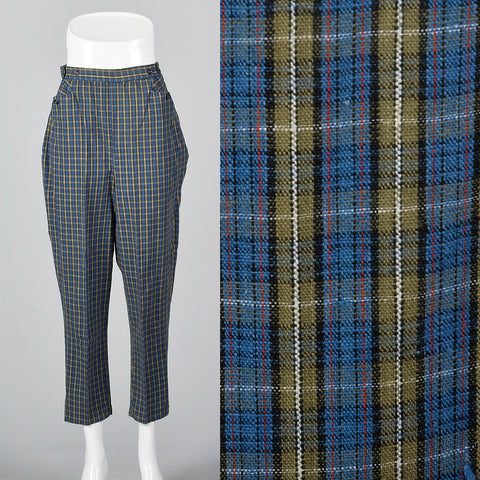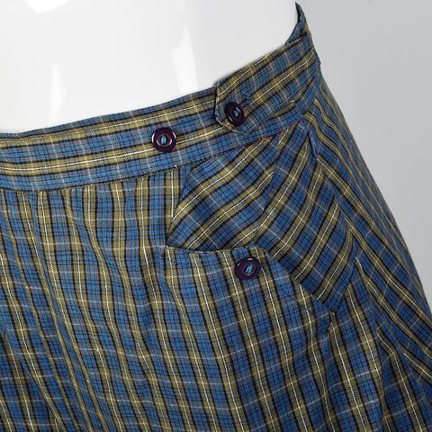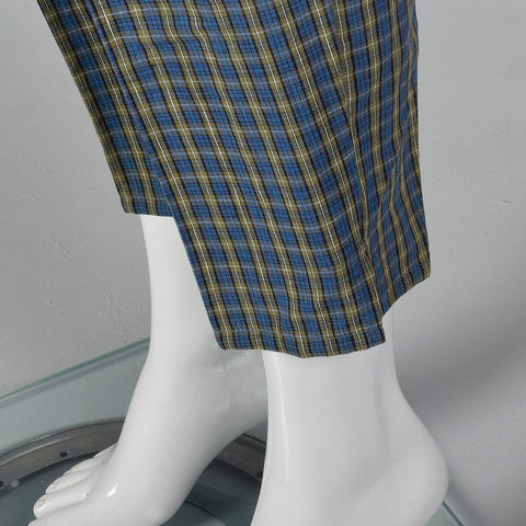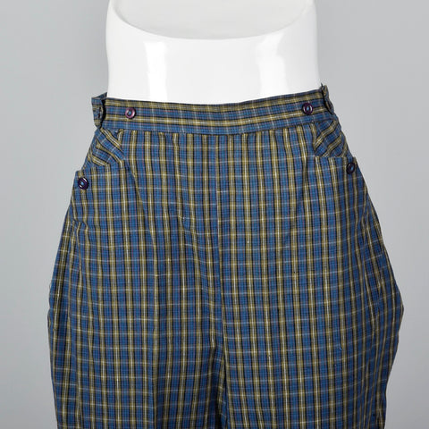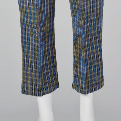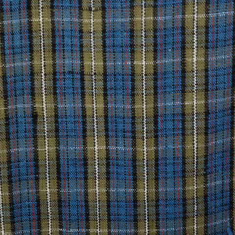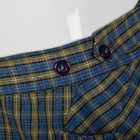 The textile of this pair of pants is unmarked in blue with a yellow, black, and red plaid. These pants are very lightweight and unlined. There are ...