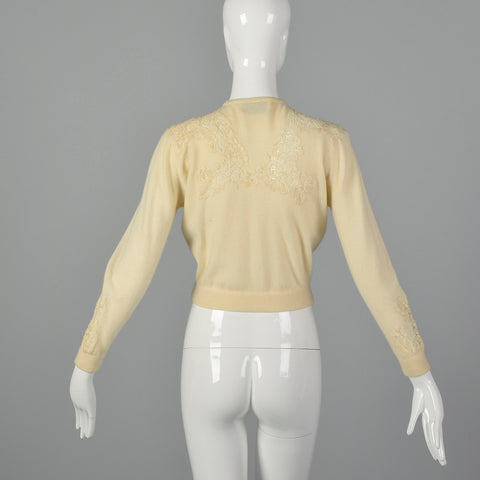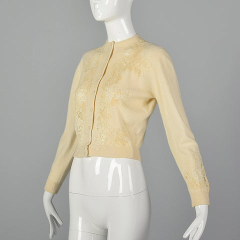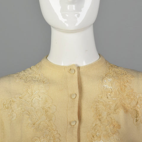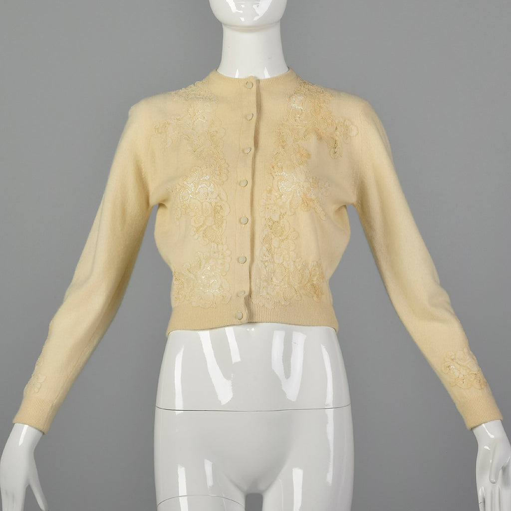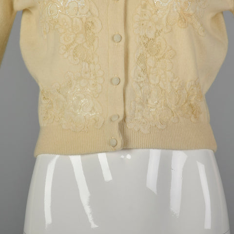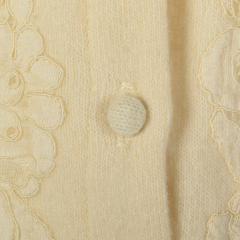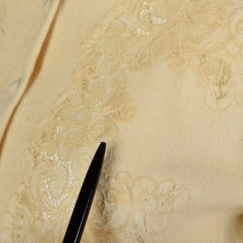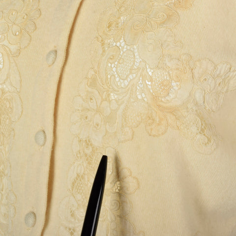 This listing is for one sweater. Cashmere sweater with lace inserts. Cream color textile, very soft with stretch to it. Long sleeves. Rib knit cuff...