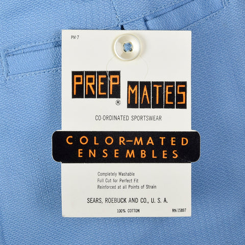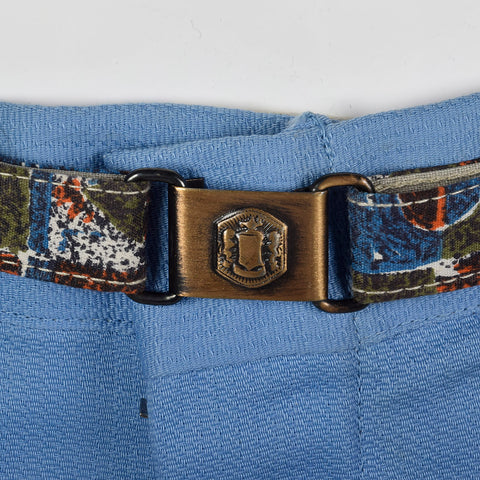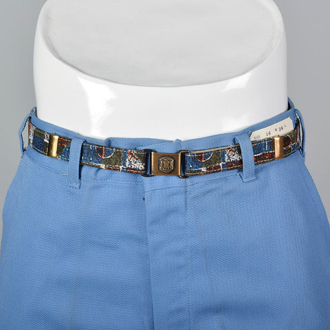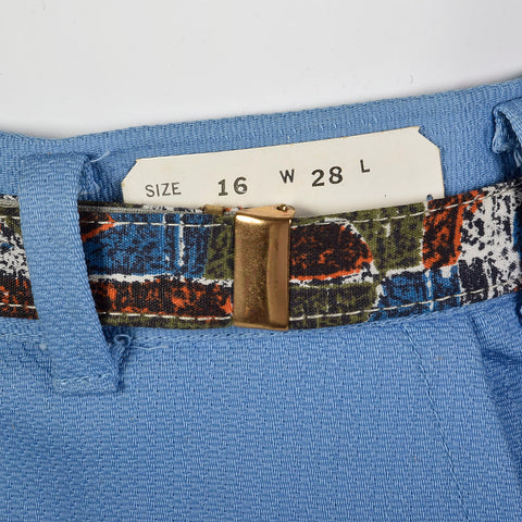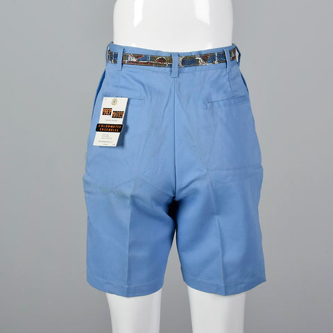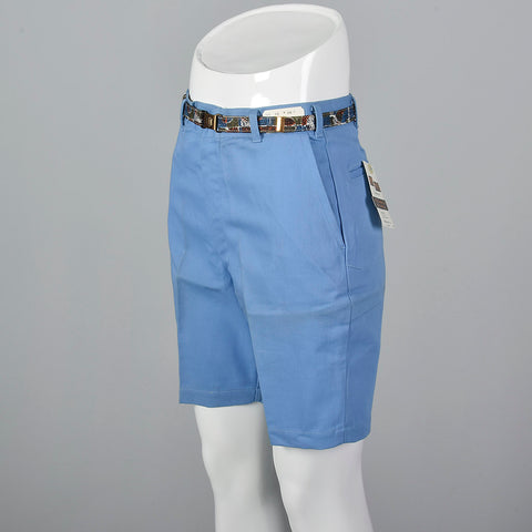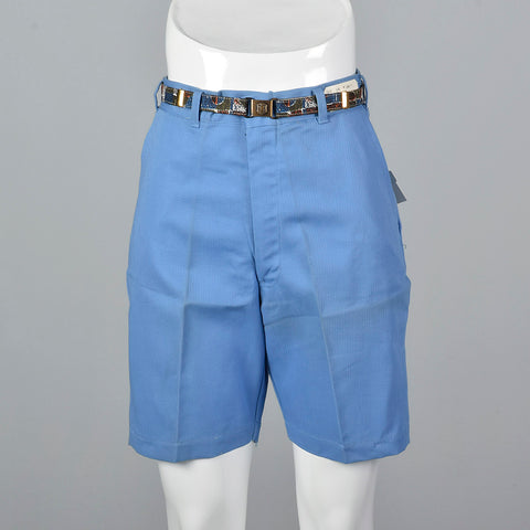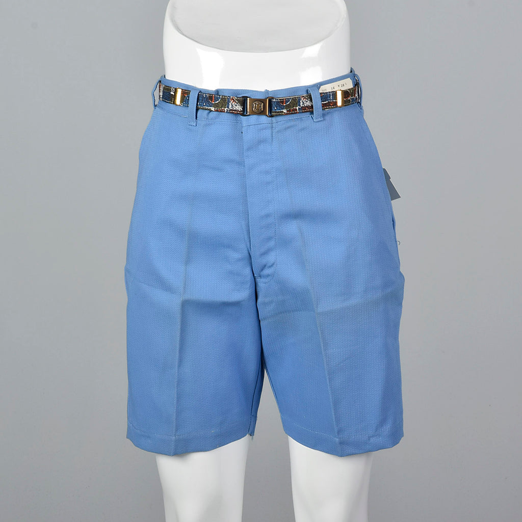 This listing is for one pair of shorts. Textile is sanforized cotton. Deadstock cotton bermuda shorts. Blue with original belt. Belt is adjustable....
