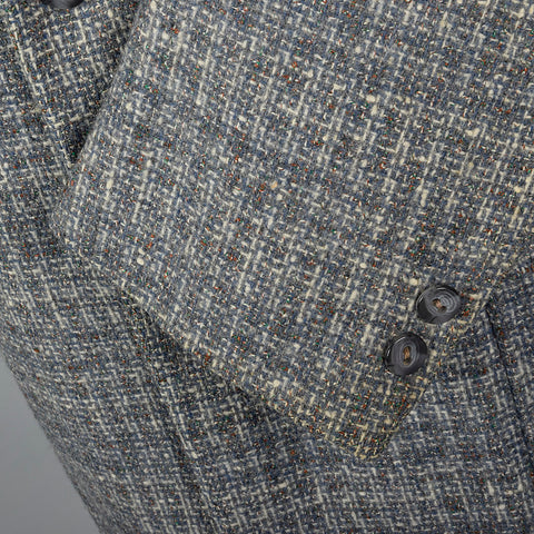 This listing is for one jacket. Textile is unmarked. Gray tweed sportcoat with multicolored flecks. This jacket has a partial lining. Three button ...
