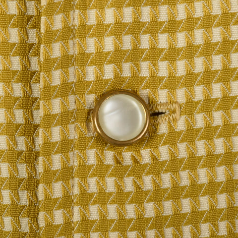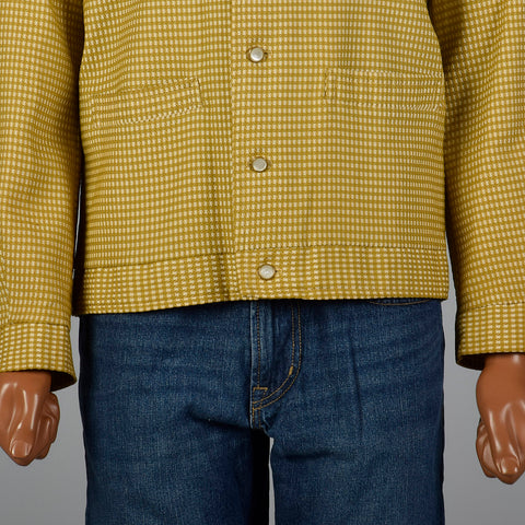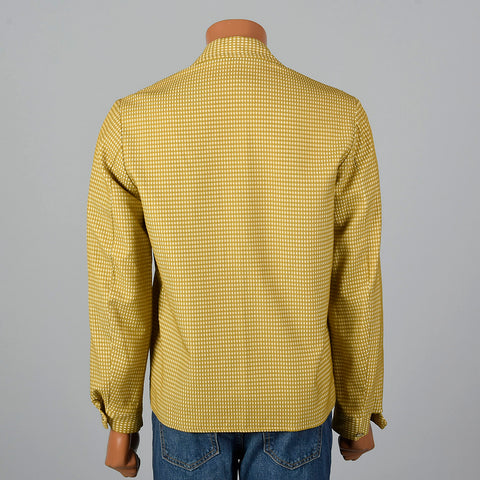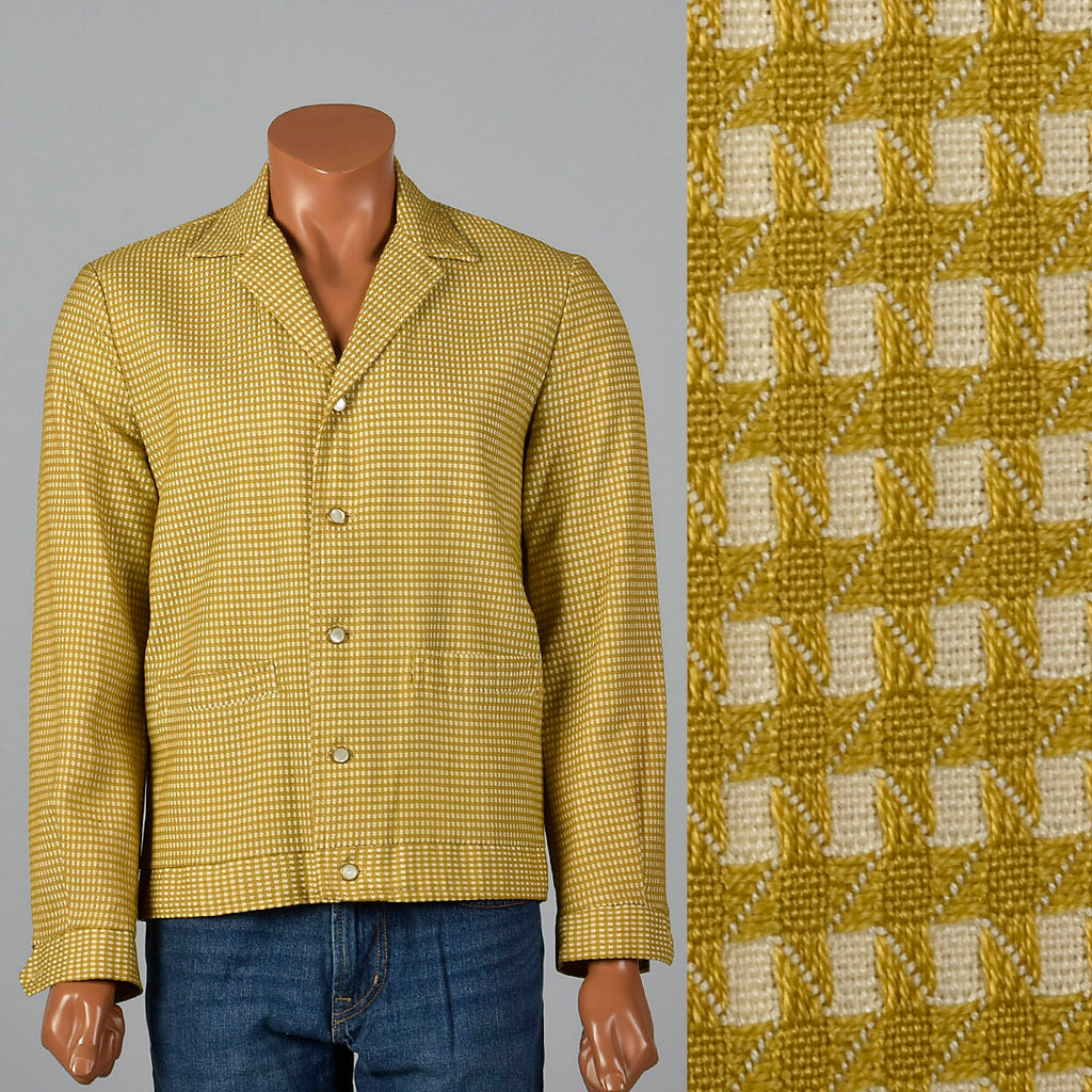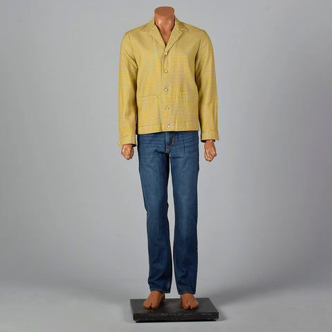 This 1950s mens jacket is a perfect example of midcentury leisure wear! The textile is unmarked in gold and cream, and this jacket is fully lined. ...