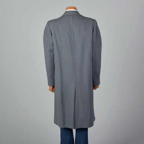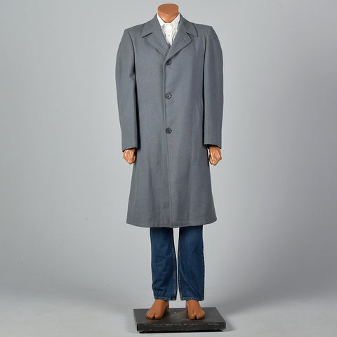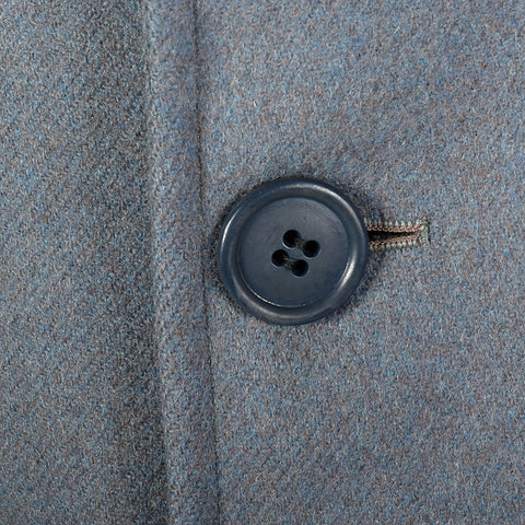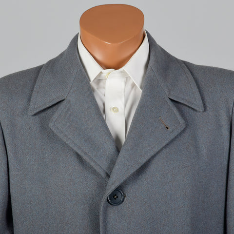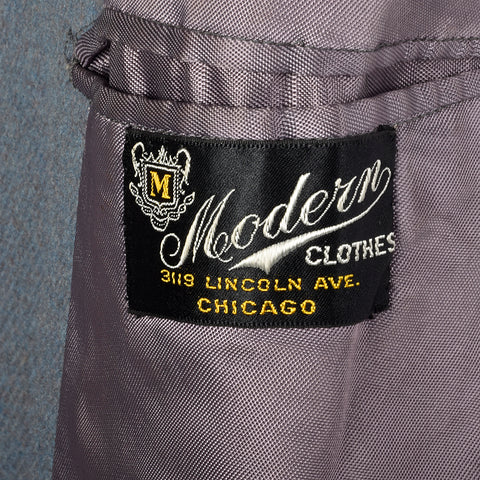 The textile of this coat is unmarked, gray and blue wool. This is a heavy weight piece, good as a winter coat. This coat is partially lined.  Size...