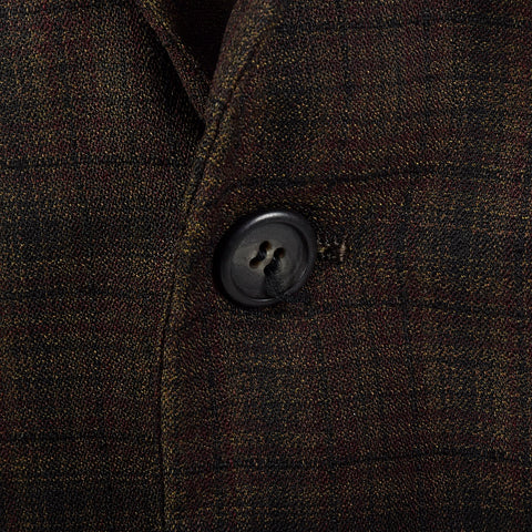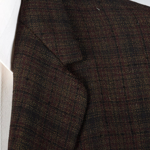 The textile of this men's jacket is unmarked, brown plaid, and this is a lightweight piece that would be good for warm weather wear. This jacket ha...