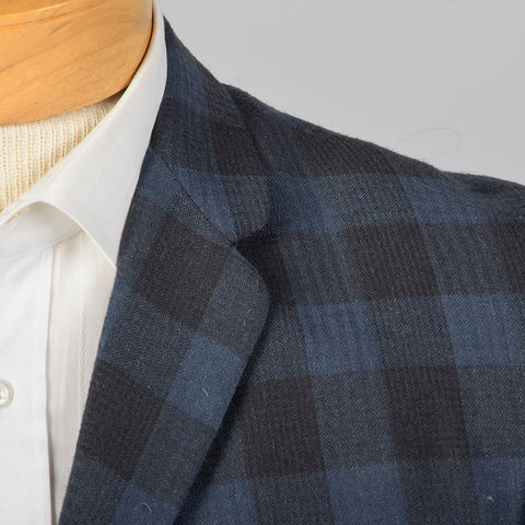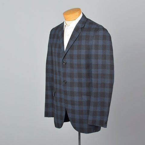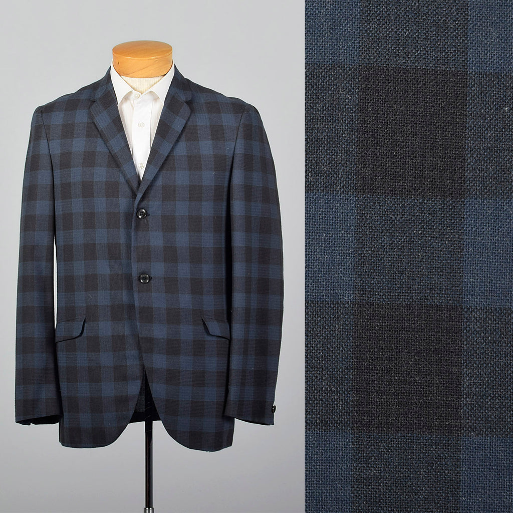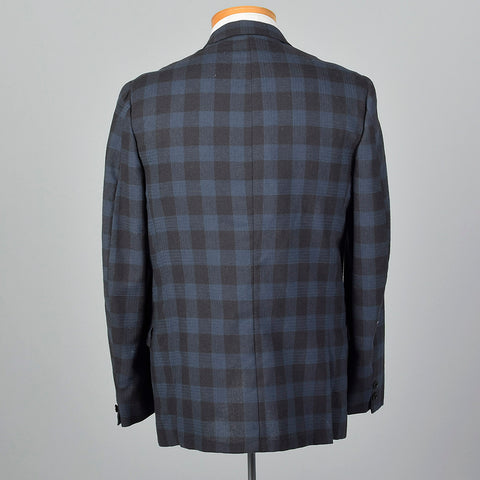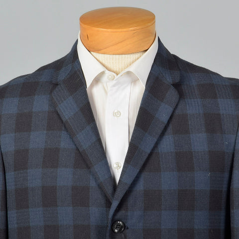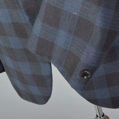 1950s Mens Wool Jacket in Blue and Gray Check