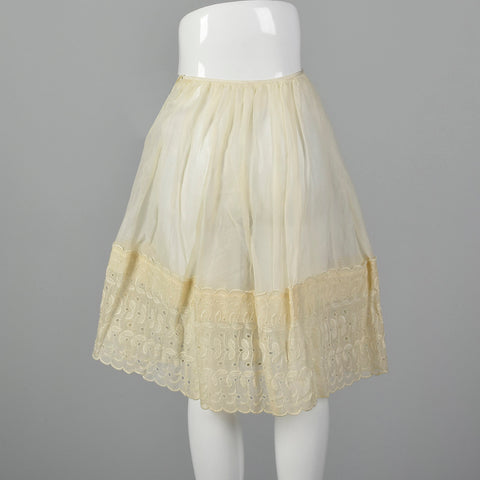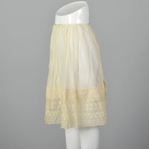 This listing is for one slip. Textile is unmarked, cotton. Cotton eyelet slip. Off white, gathered at the waist with a small 1/4' waistband. Single...