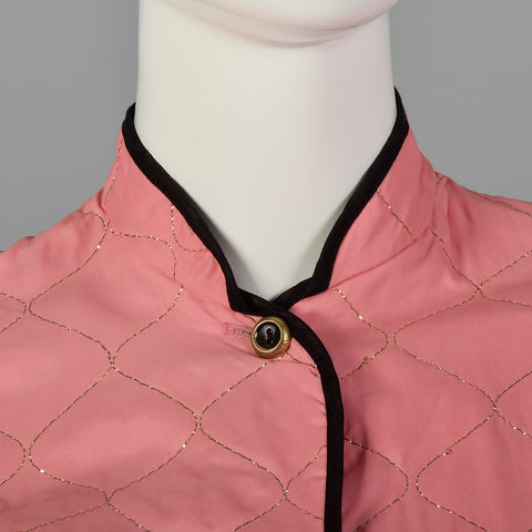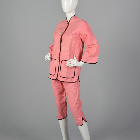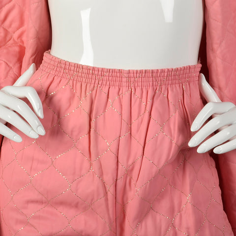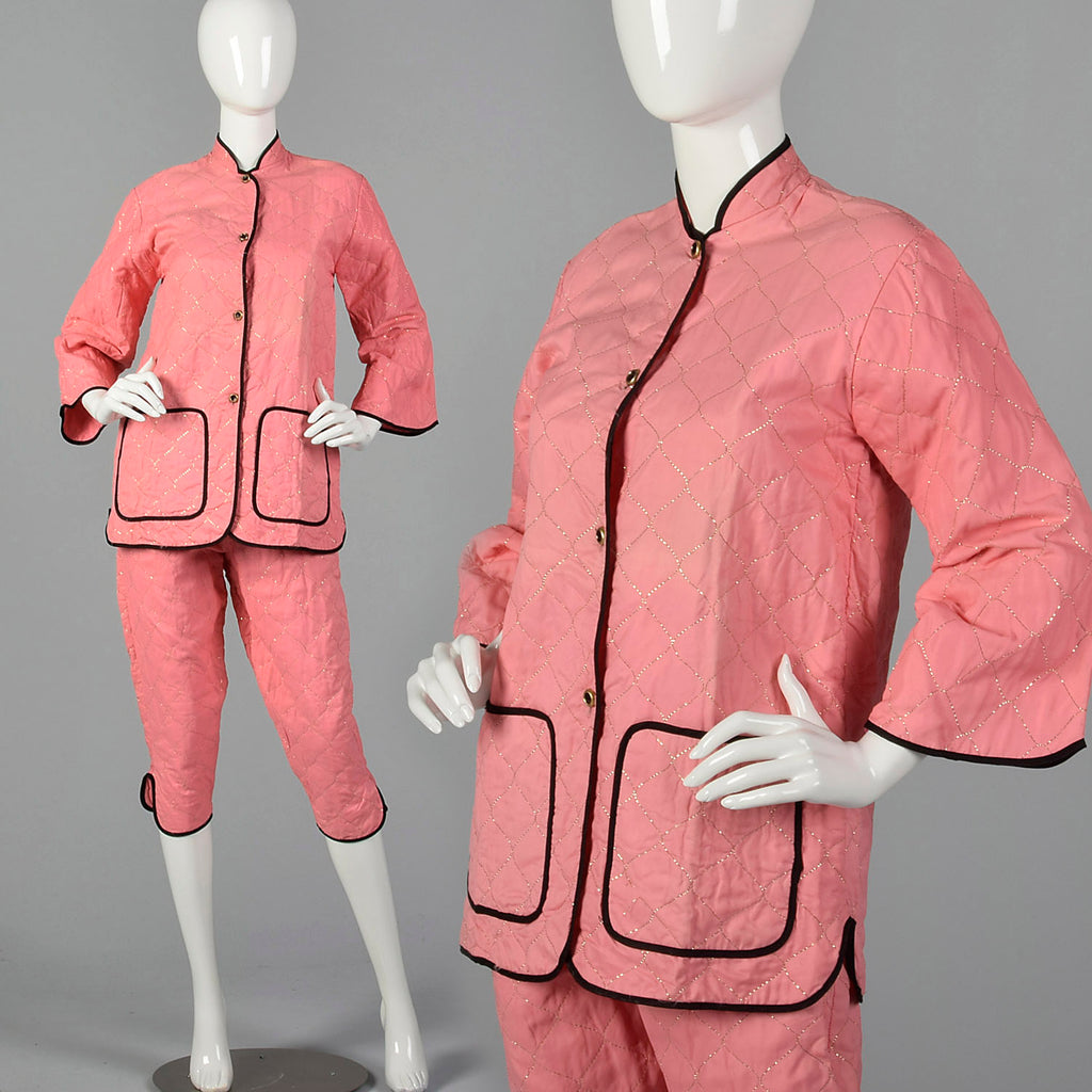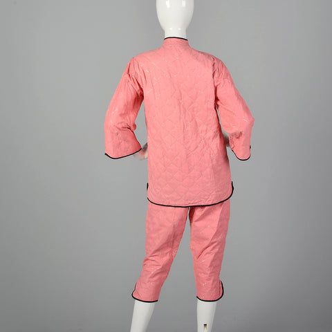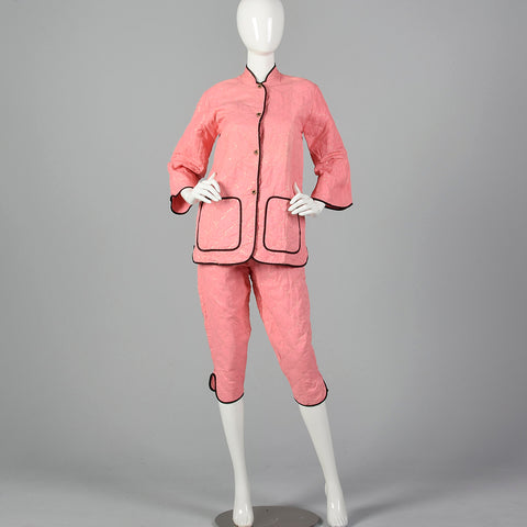 1950s Pink Quilted Pajama Set with Gold Topstitching