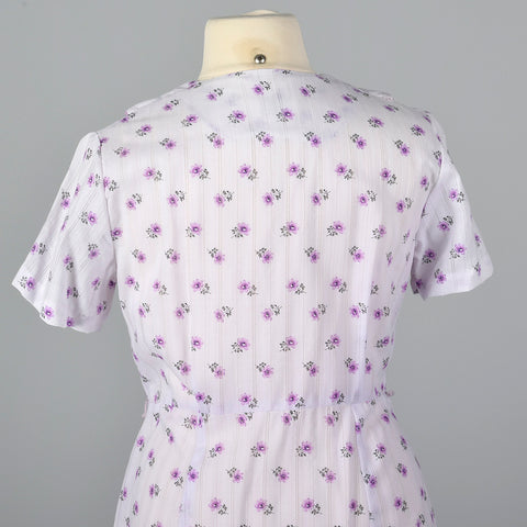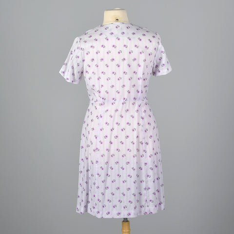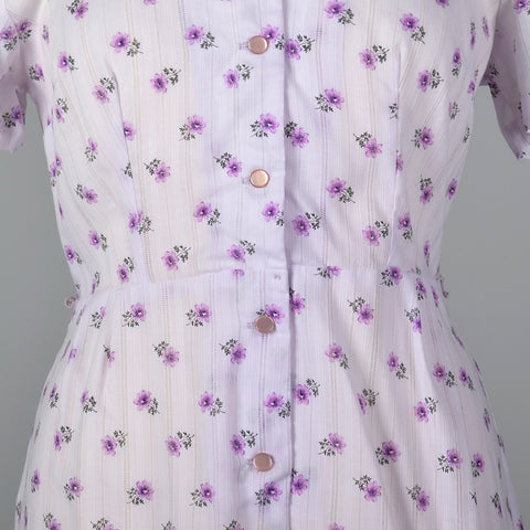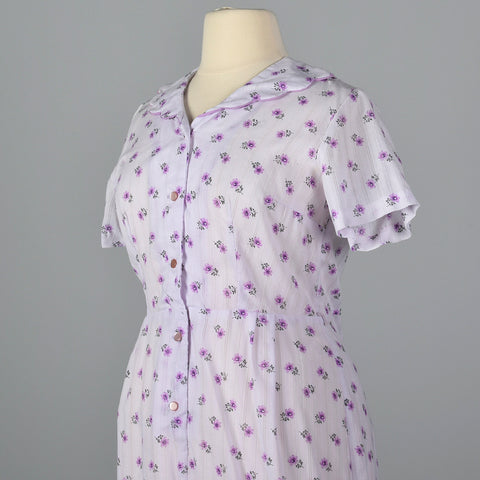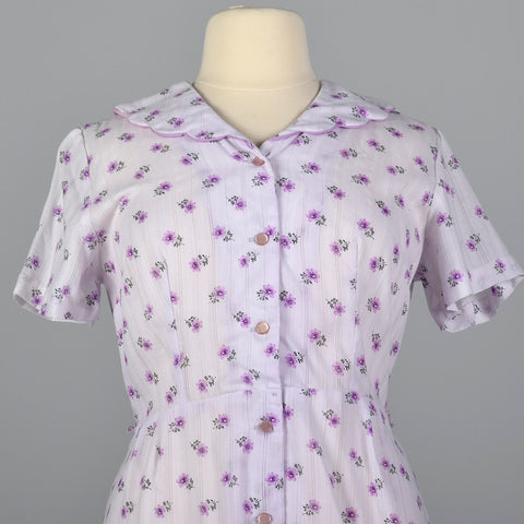 1950s Purple Floral Dress with Scallop Collar