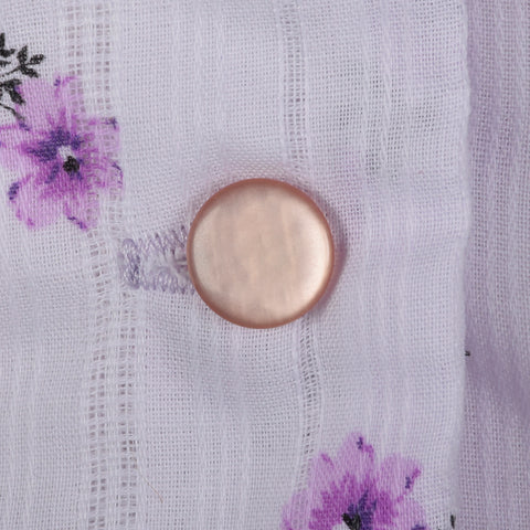 The textile of this dress is unmarked, cotton, in purple with a purple floral print. This dress is unlined with short sleeves, a scallop collar, an...