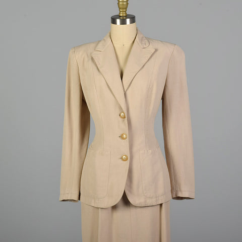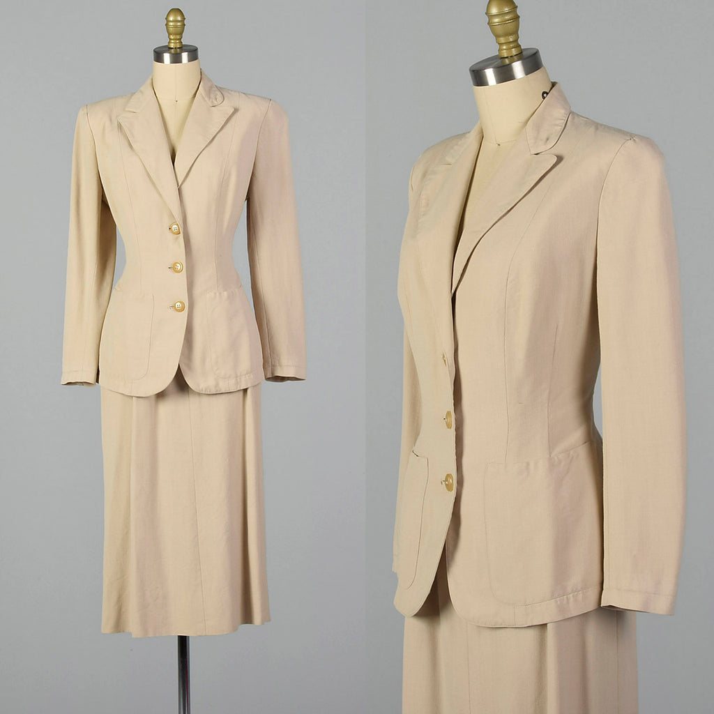 This listing is for one skirt suit consisting of one skirt and one jacket. Textile is unmarked. Summer skirt suit. Lightweight linen look textile i...