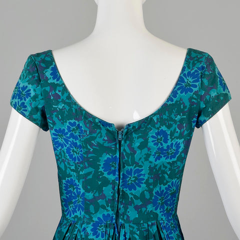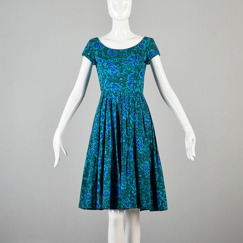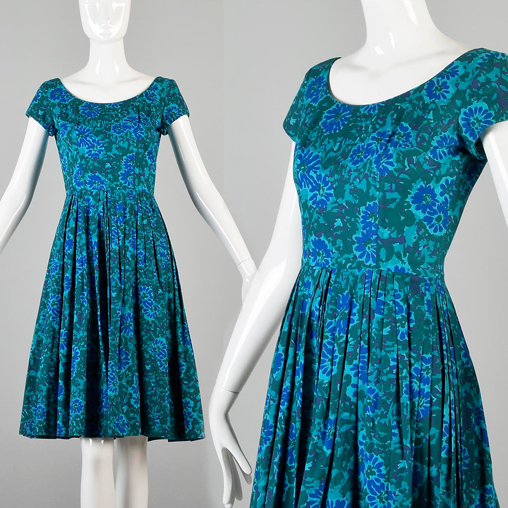 The vibrant colors of this dress are really gorgeous! This is a cotton dress in a blue, teal and purple floral print. This dress has short sleeves,...