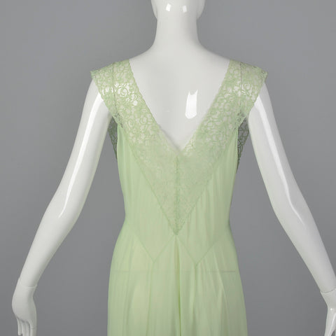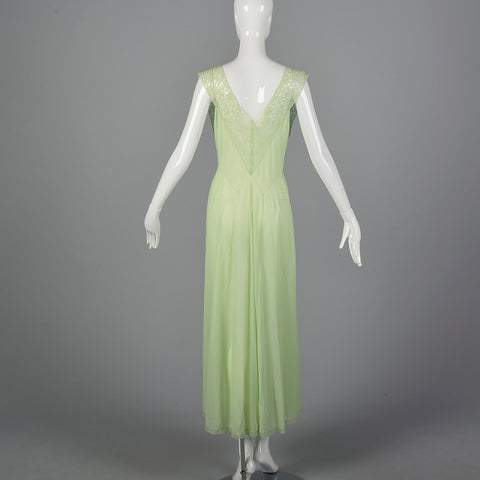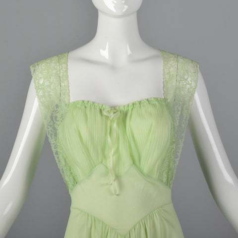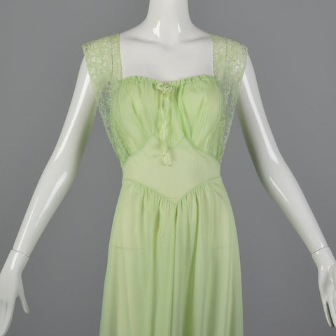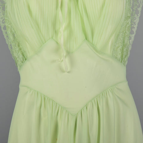 1950s Vanity Fair Green Nightgown with Crystal Pleat Bust