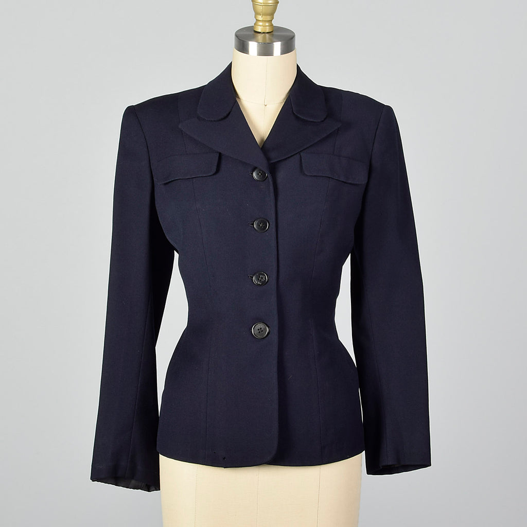 1950s Waves US Navy Military Wool Jacket in Navy Blue