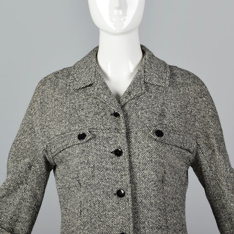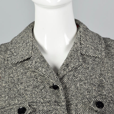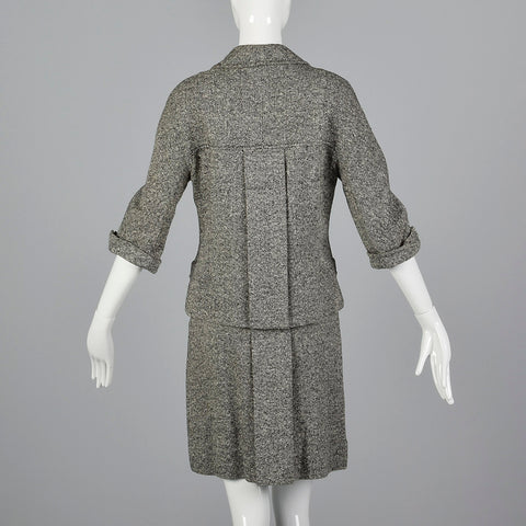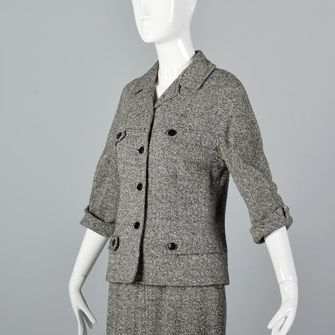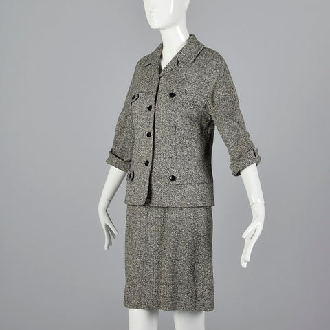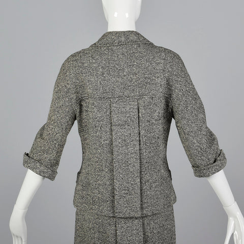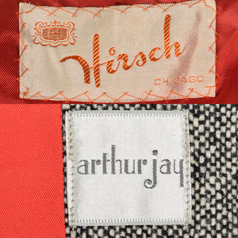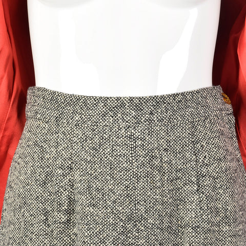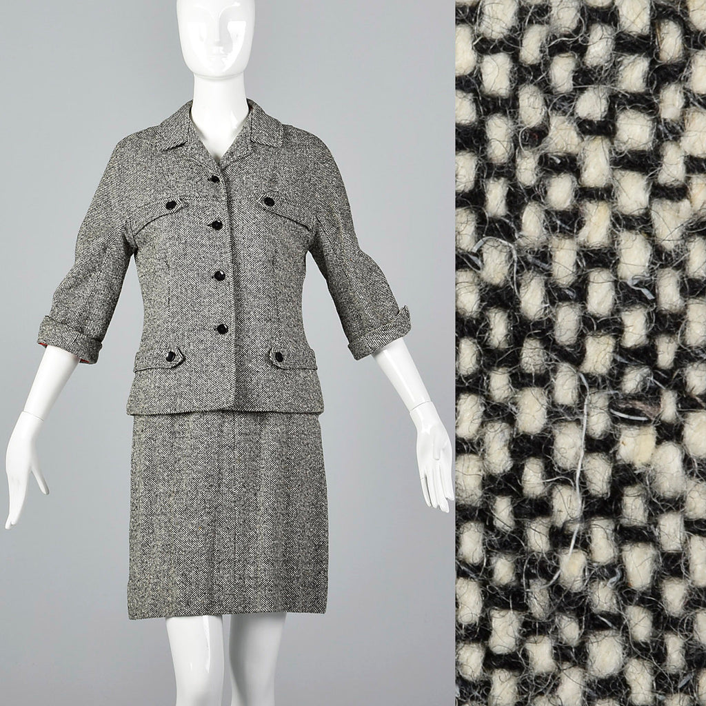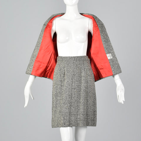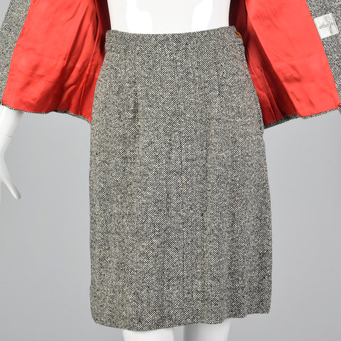 1960s Black and White Tweed Skirt Suit with Red Lining