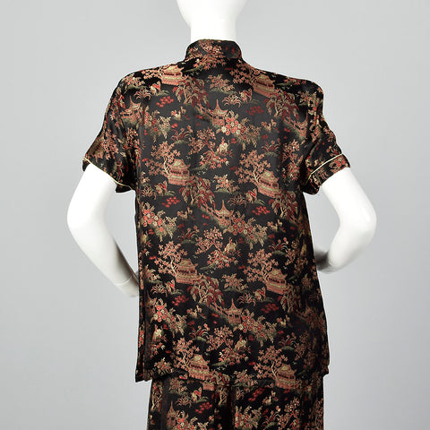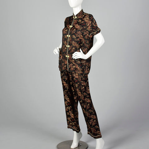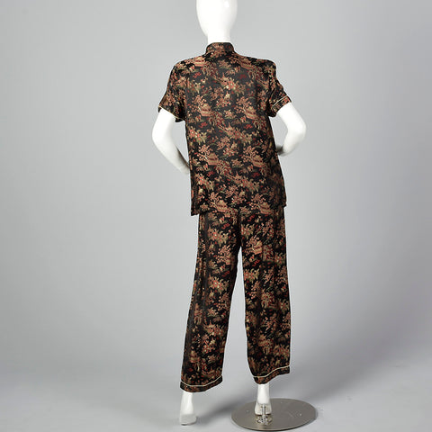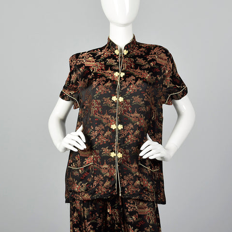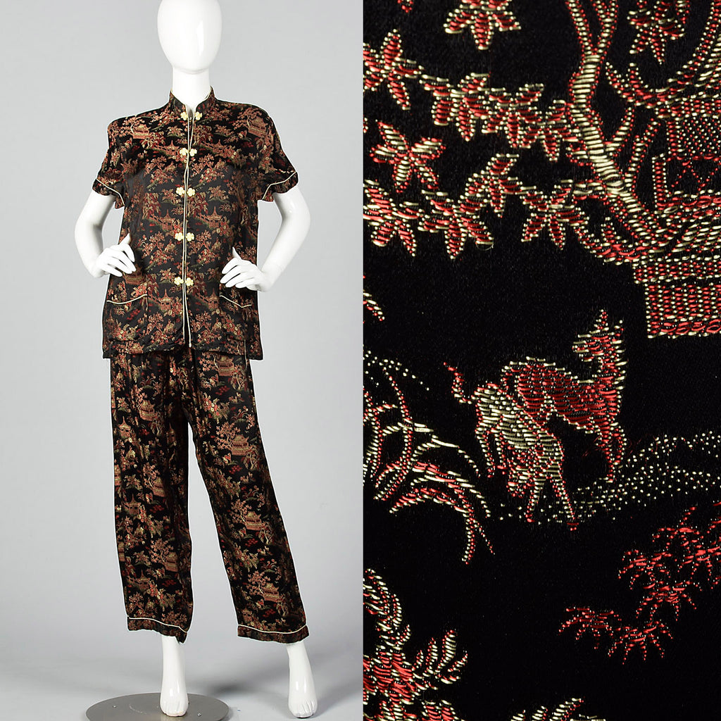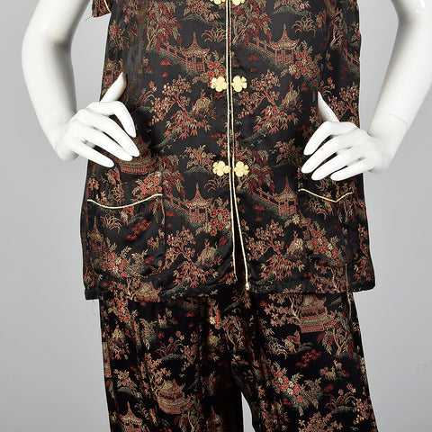 1960s Black Brocade Pajama Set