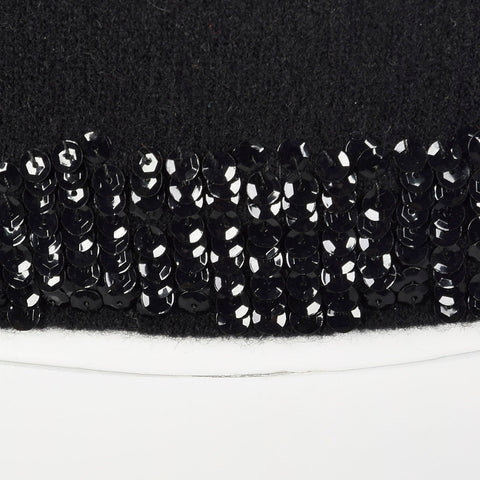 The textile of this sweater is a wool and angora blend in black and is very soft. This sweater is sleeveless with a boxy fit and sequin details and...