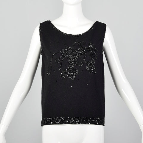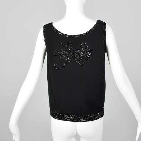 1960s Black Sleeveless Sweater with Beading
