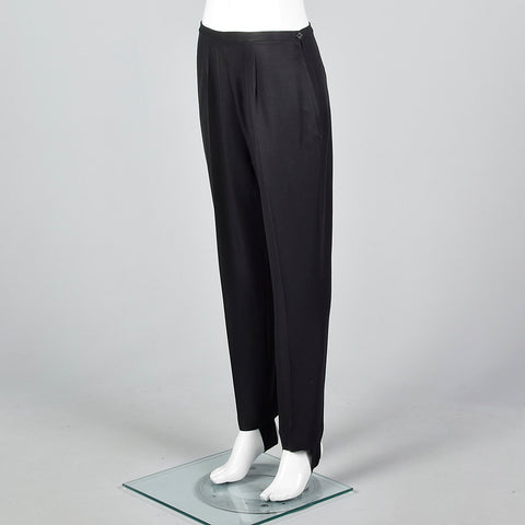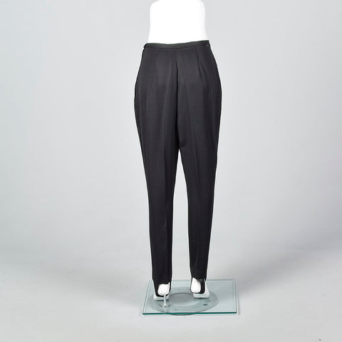 This listing is for one pair of pants. Textile is unmarked. Stirrup pants. Black with side zip and single button at the waist. They have some stret...