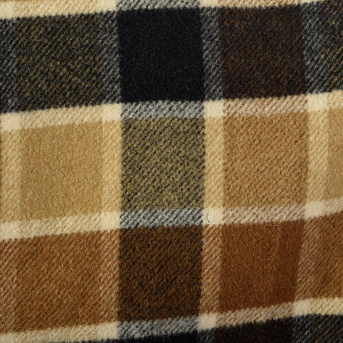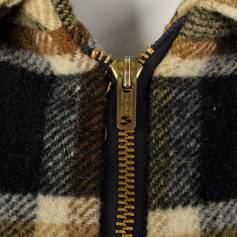 This set includes one cape and one skirt. The textile is unmarked, plaid in shades of brown and black. The cape has a gold-tone metal front zip wit...