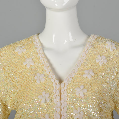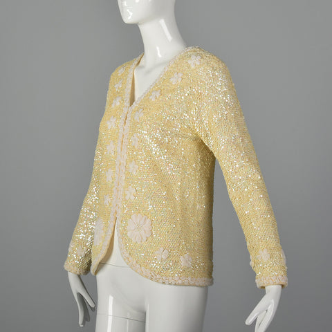 1960s Cardigan with Sequins and Woven Ribbon Design
