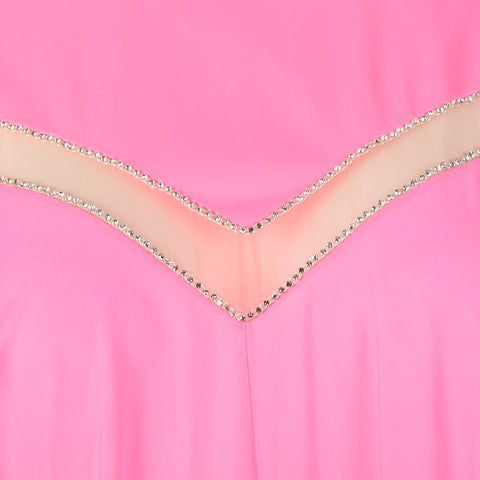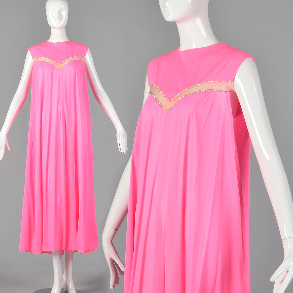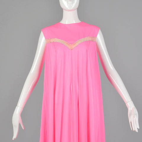 1960s Claire Sandra Lucie Ann Deadstock Pink Nightgown with Sheer Stripe