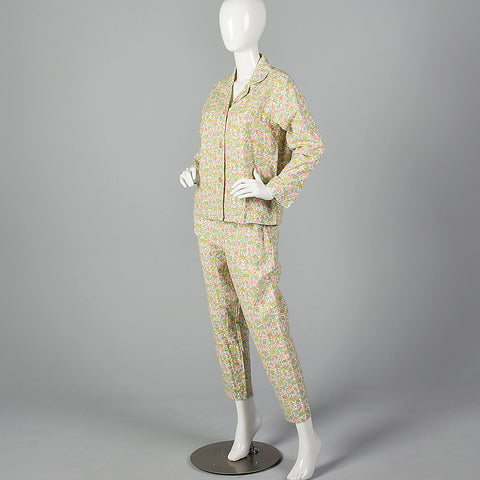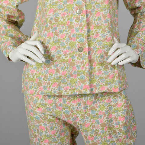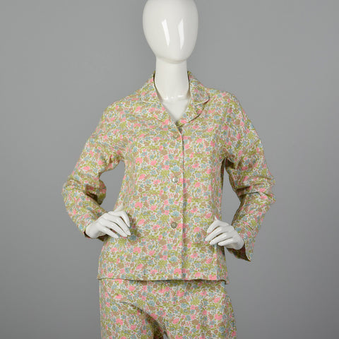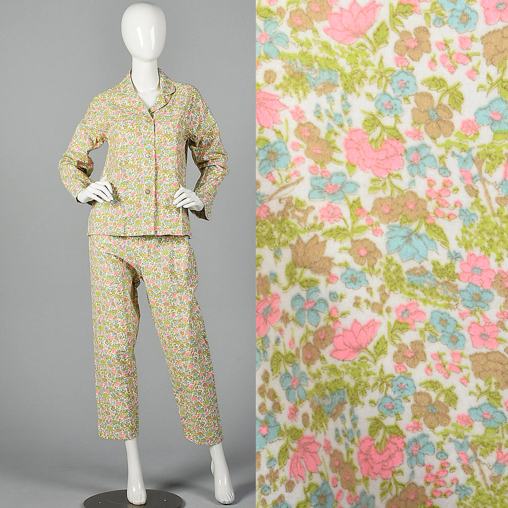 1960s Deadstock Flannel Pajamas in Pink Floral