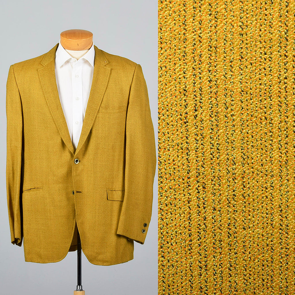 This listing is for one jacket. Textile is unmarked. Gold stripe jacket with subtle green and orange flecks. This jacket has a partial lining. Two ...