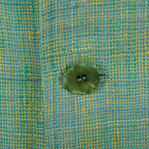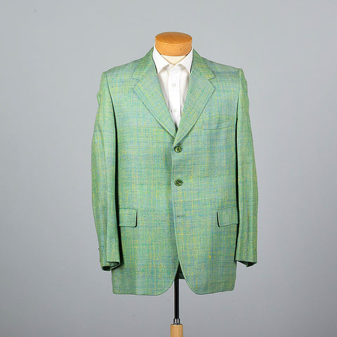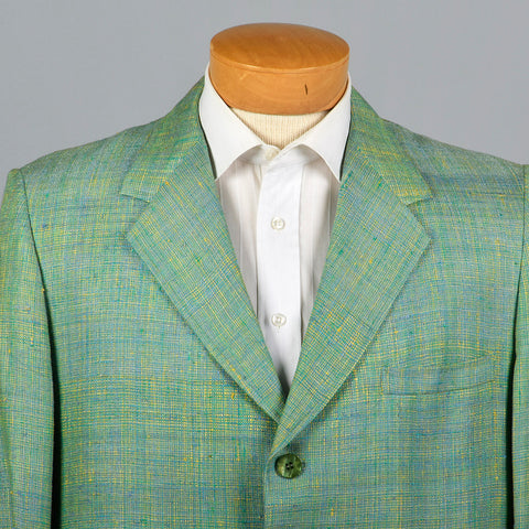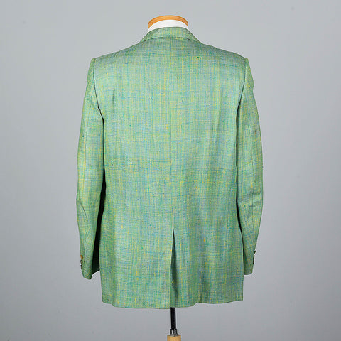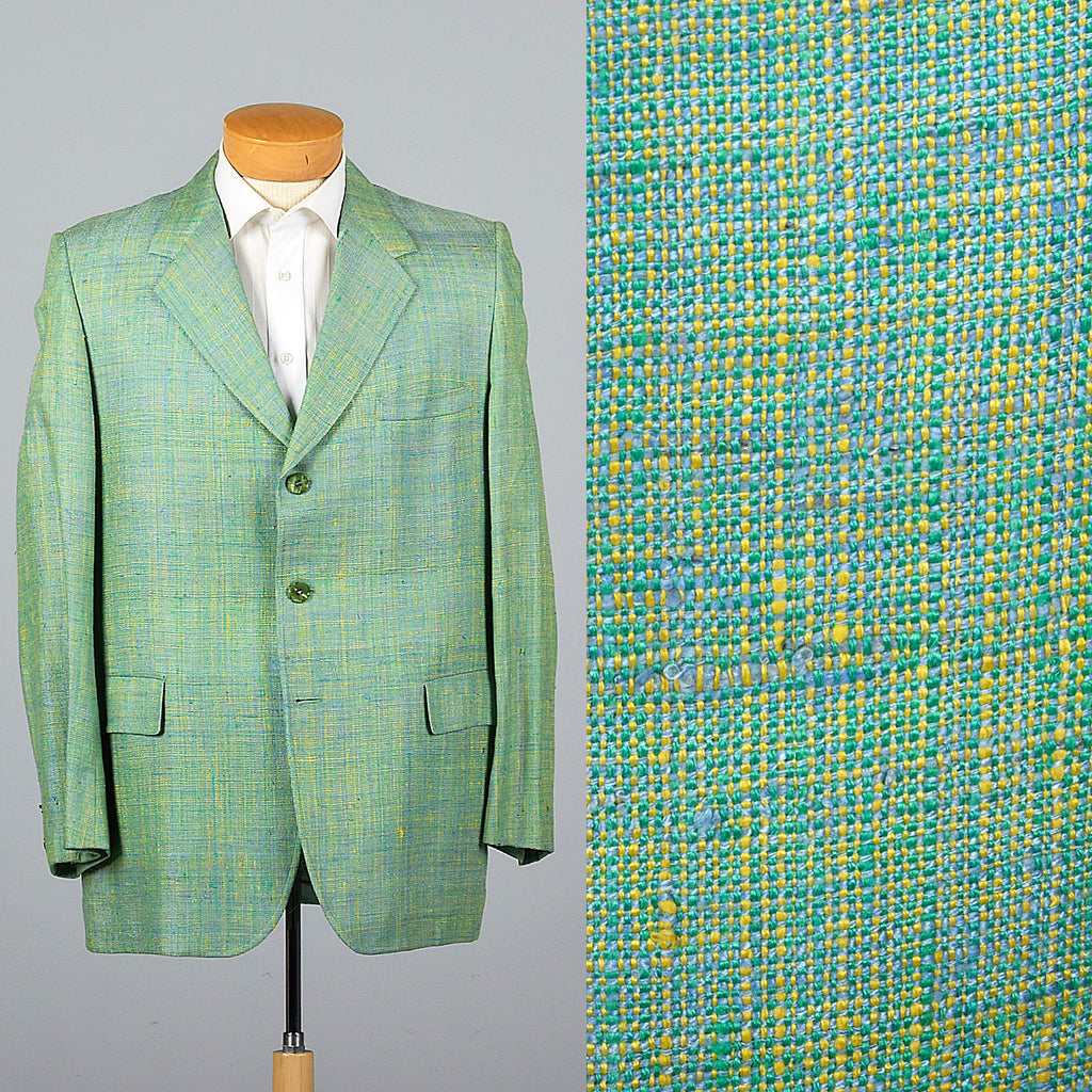 This listing is for one jacket. Textile is silk. Silk suit jacket. Green and blue jacket with a great woven slubbed textile. Fully lined in green. ...