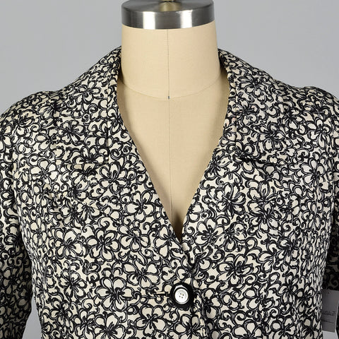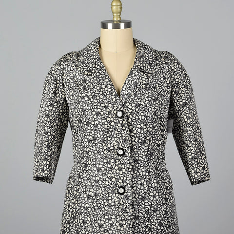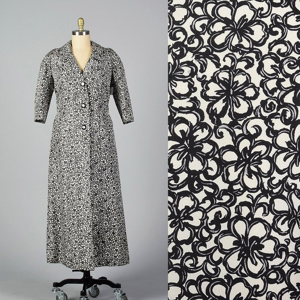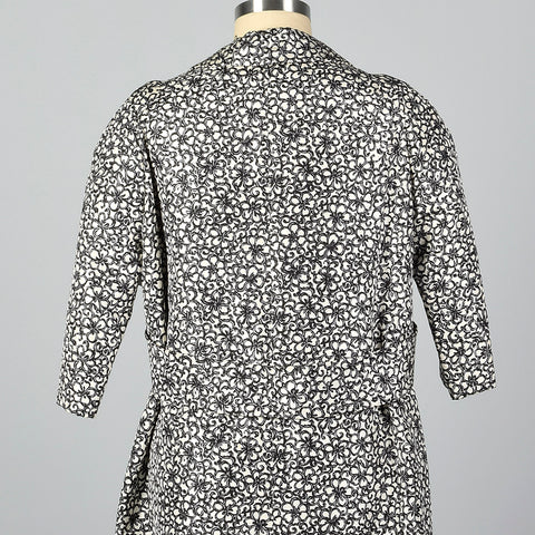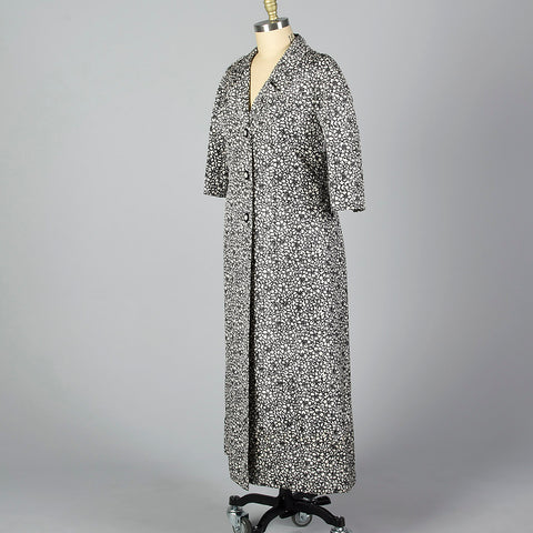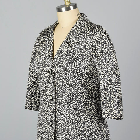 1960s James Galanos Formal Silk Opera Coat in a Black and White Floral