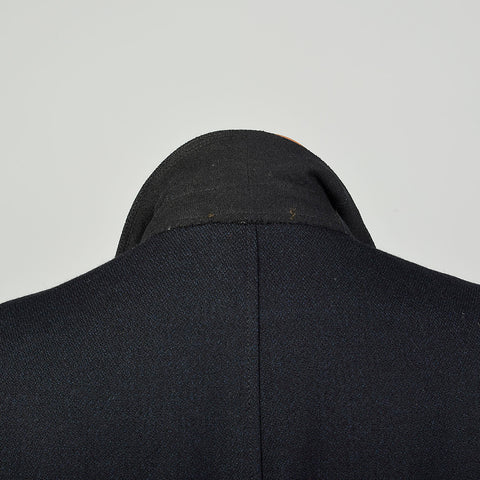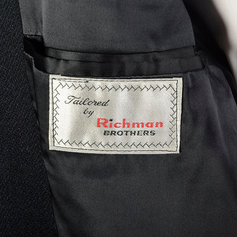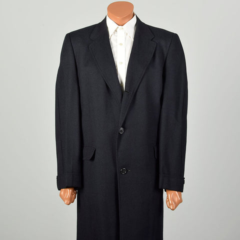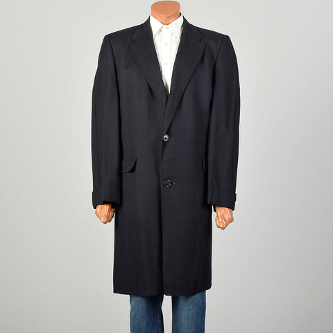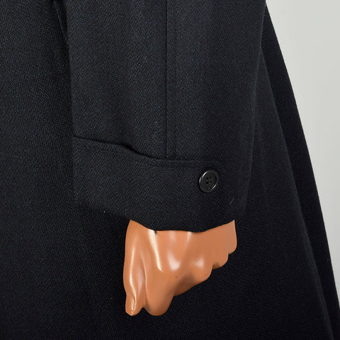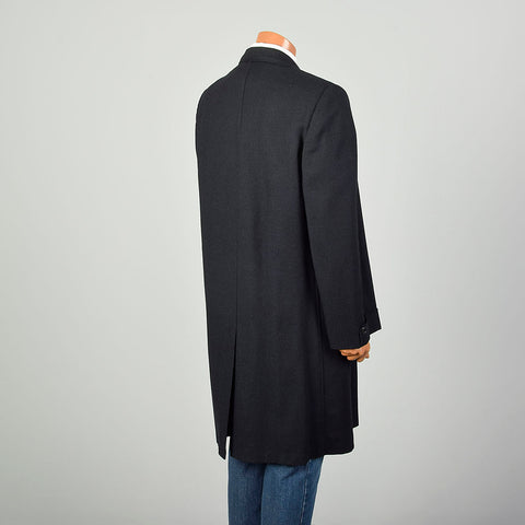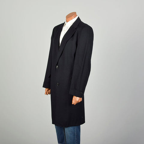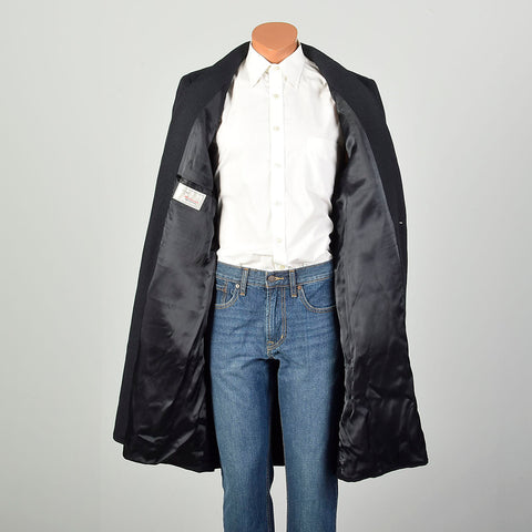 1960s Large Richman Brothers Black Lightweight Wool Outerwear Winter Overcoat
