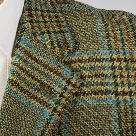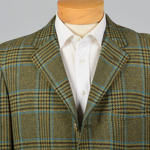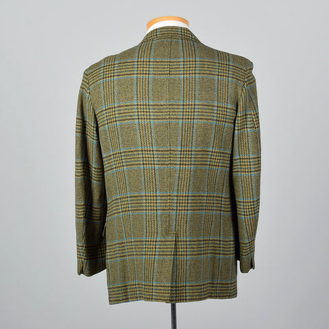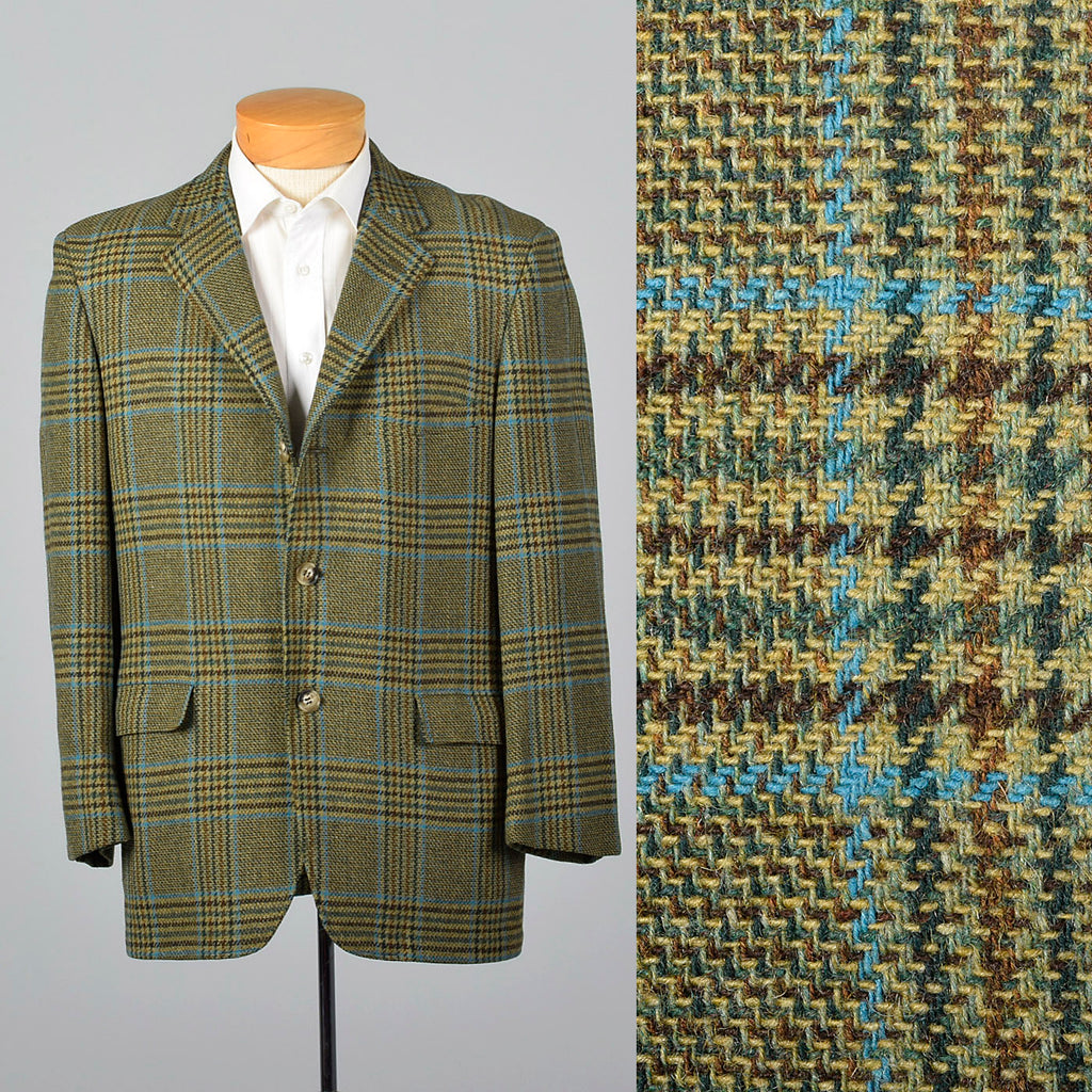 1960s Mens Blue and Tan Tweed Plaid Jacket