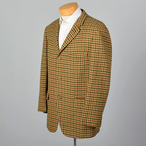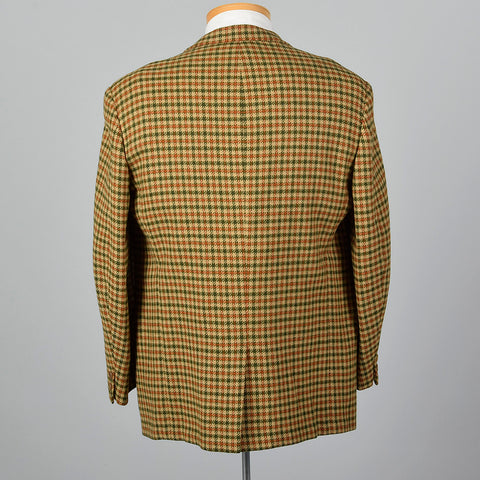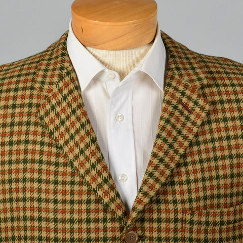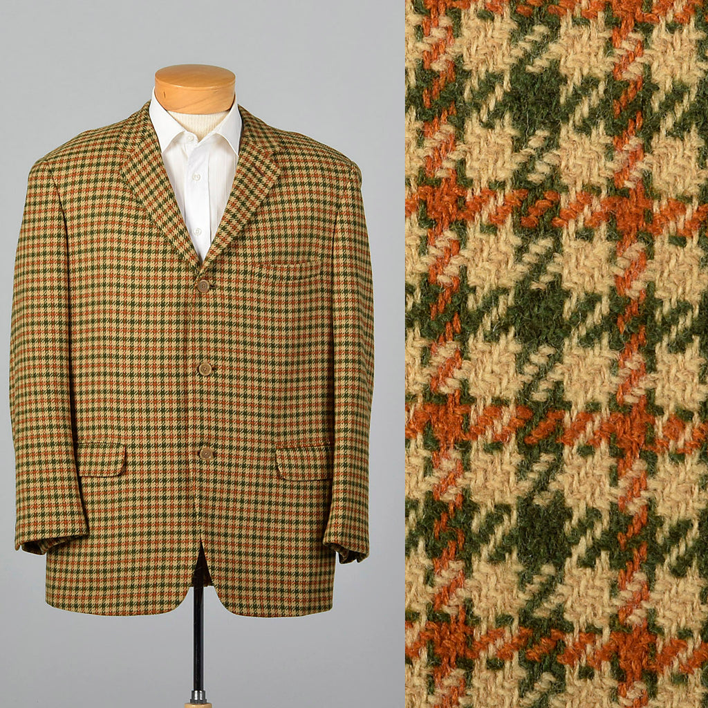 1960s Mens Green and Orange Check Jacket in Wool Tweed