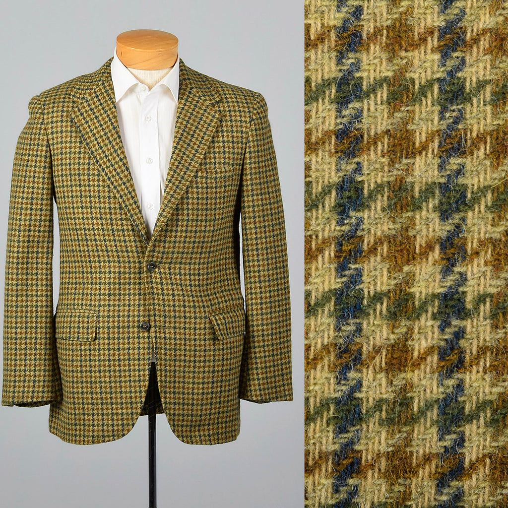 1960s Mens Tweed Jacket in Gold Houndstooth