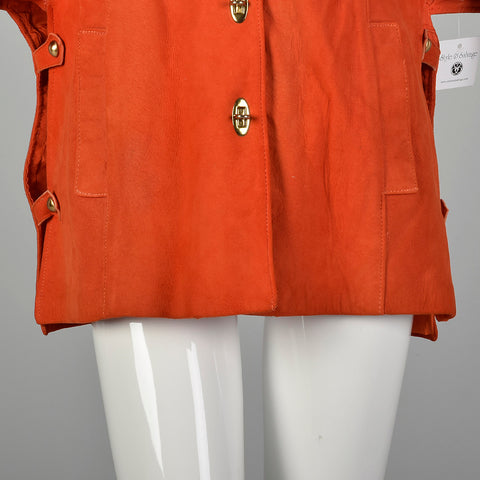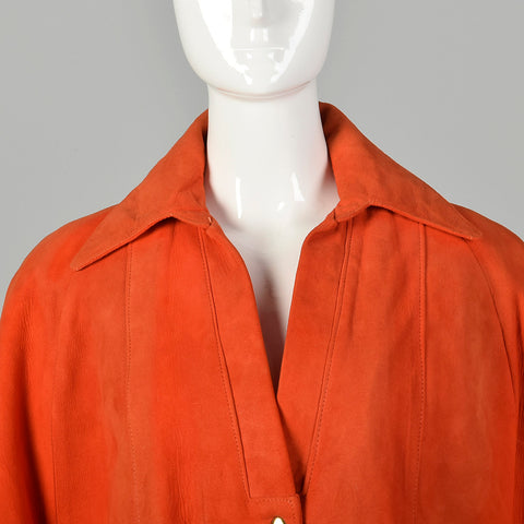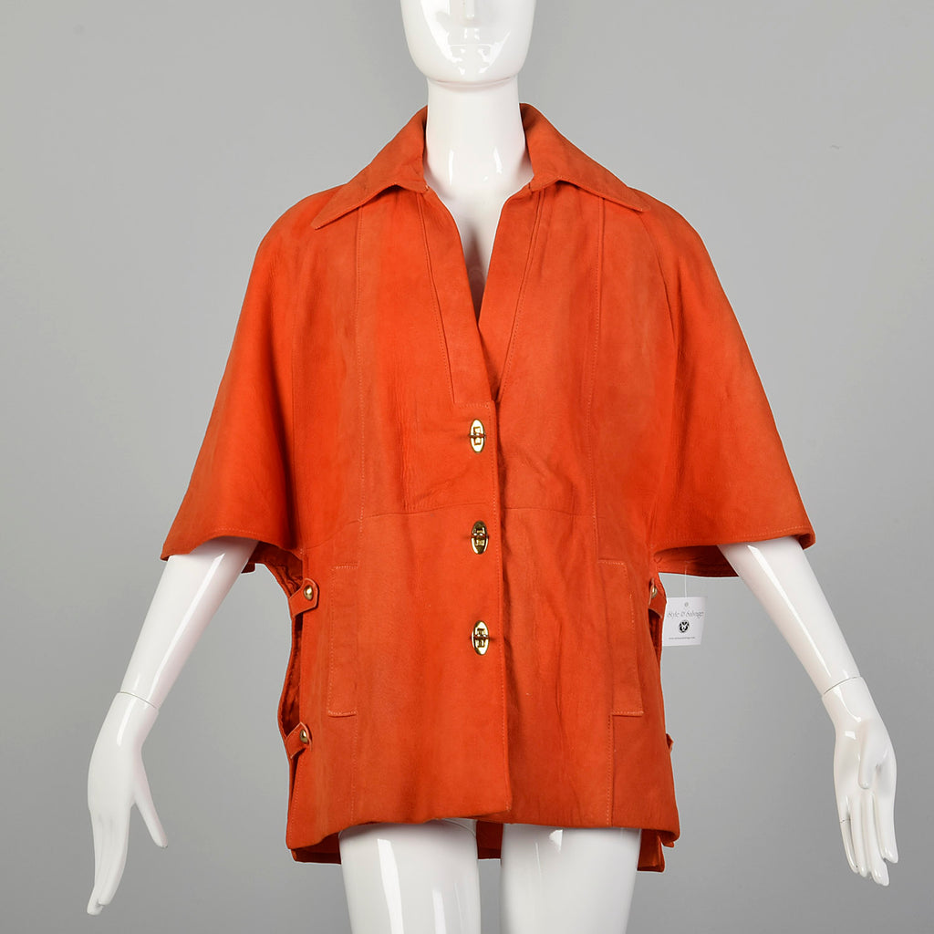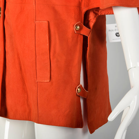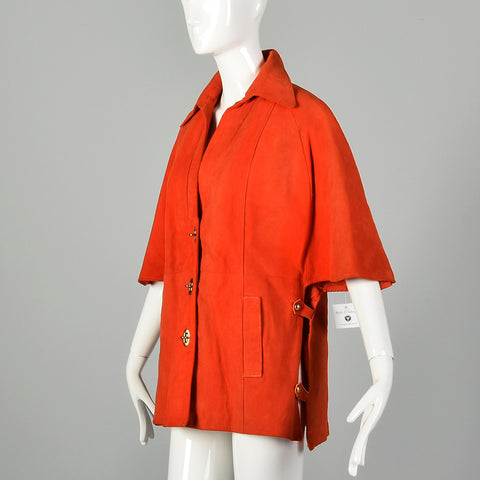 Bright orange suede cape, very Mod with toggle closures. Good weight for Spring and Fall. A fantastic layering piece. Condition: Very Good Conditi...