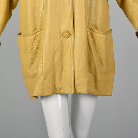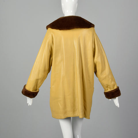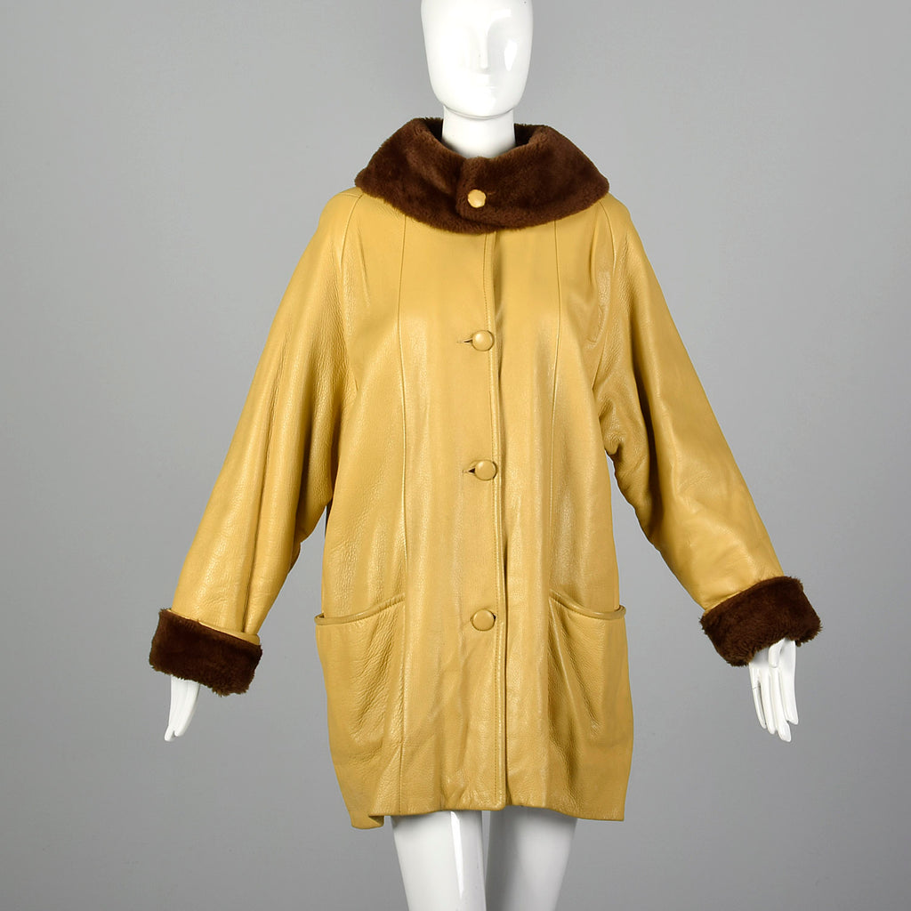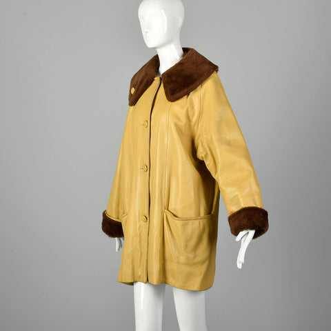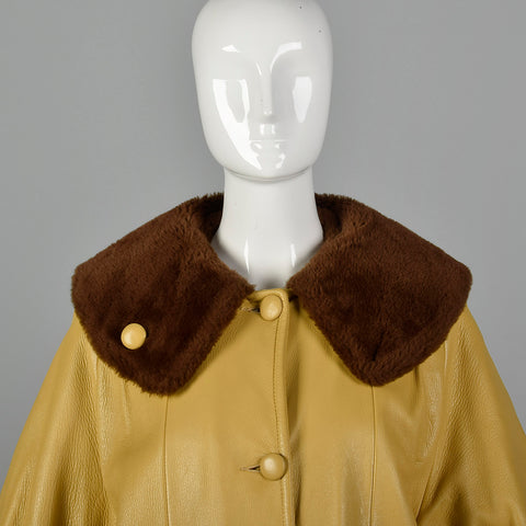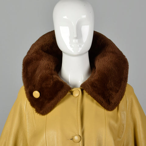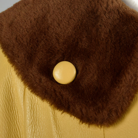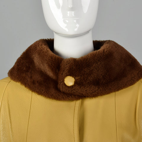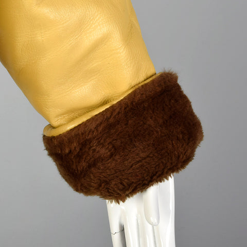1960s Mustard Yellow Leather Jacket with Brown Faux Fur Trim