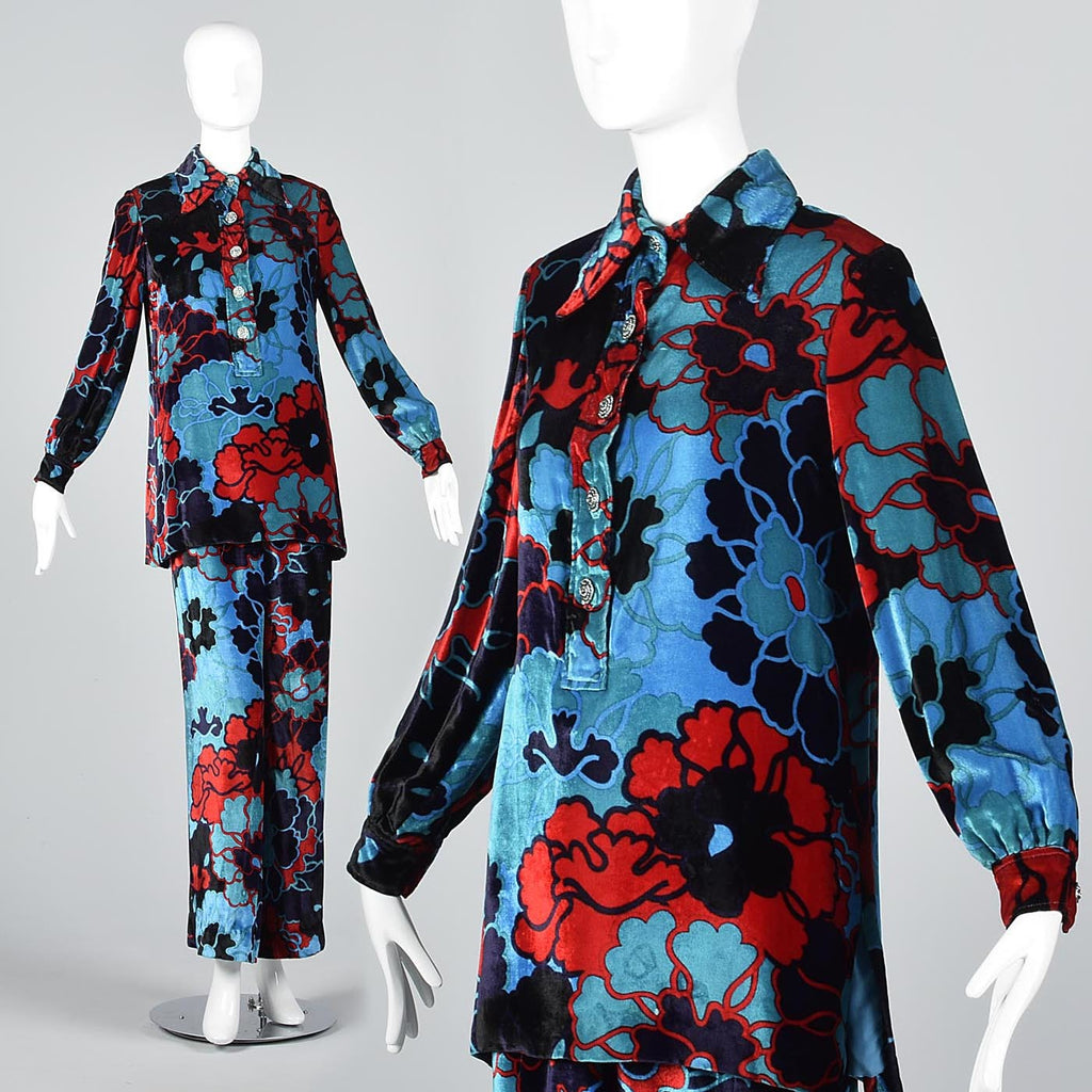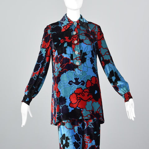 1960s Oscar de la Renta Velvet Tunic Top & Pants Set