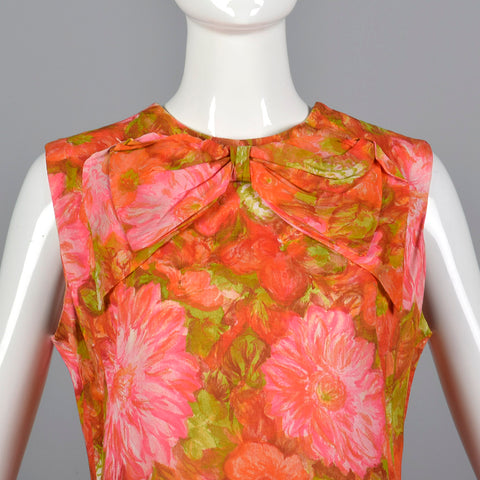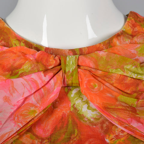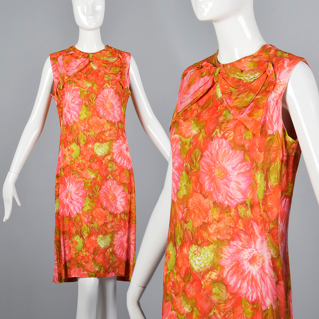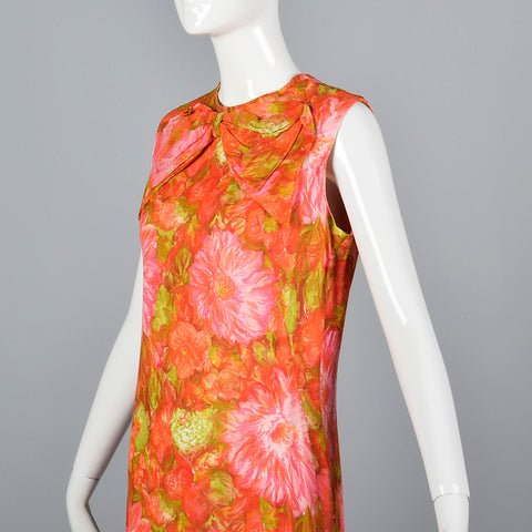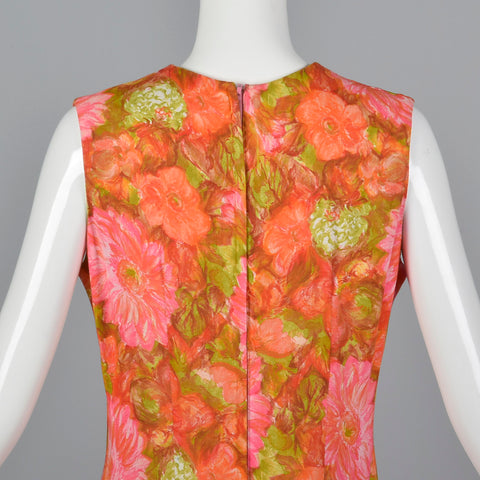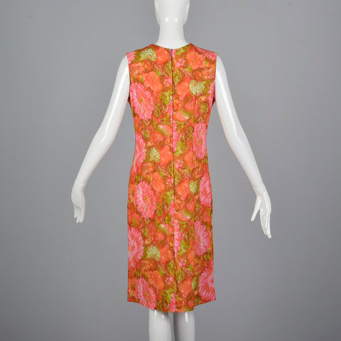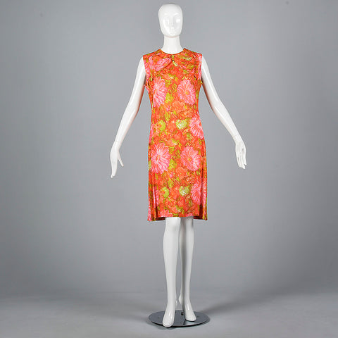 1960s Pink and Orange Floral Shift Dress