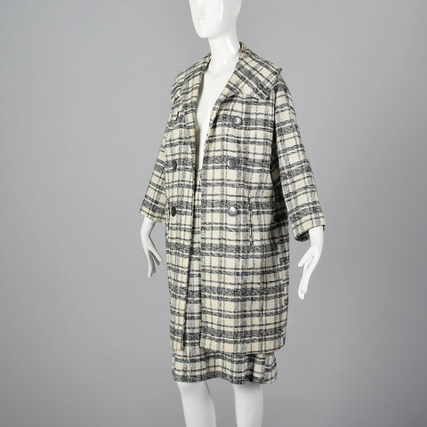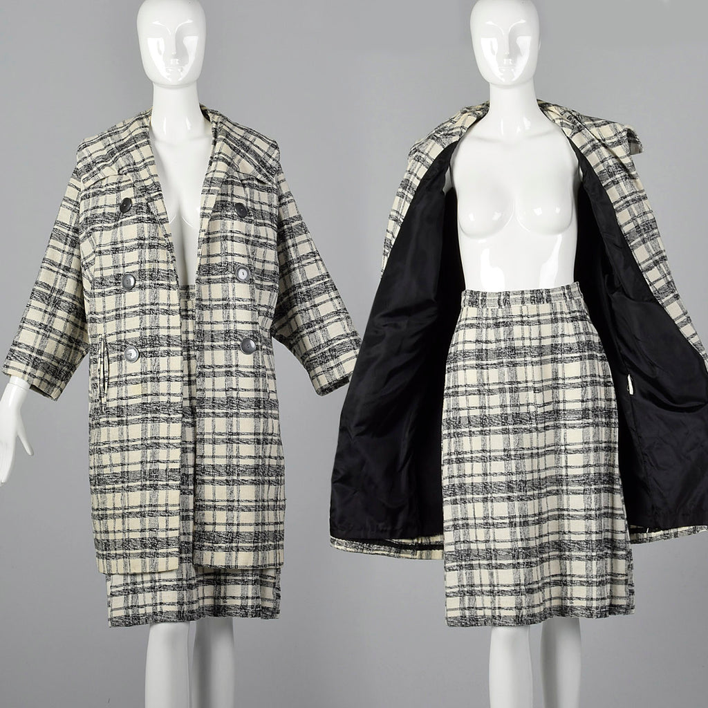 1960s Plaid Clutch Coat with Matching Skirt