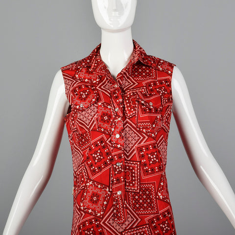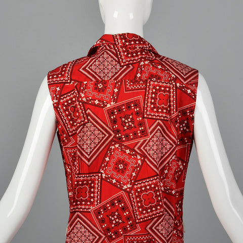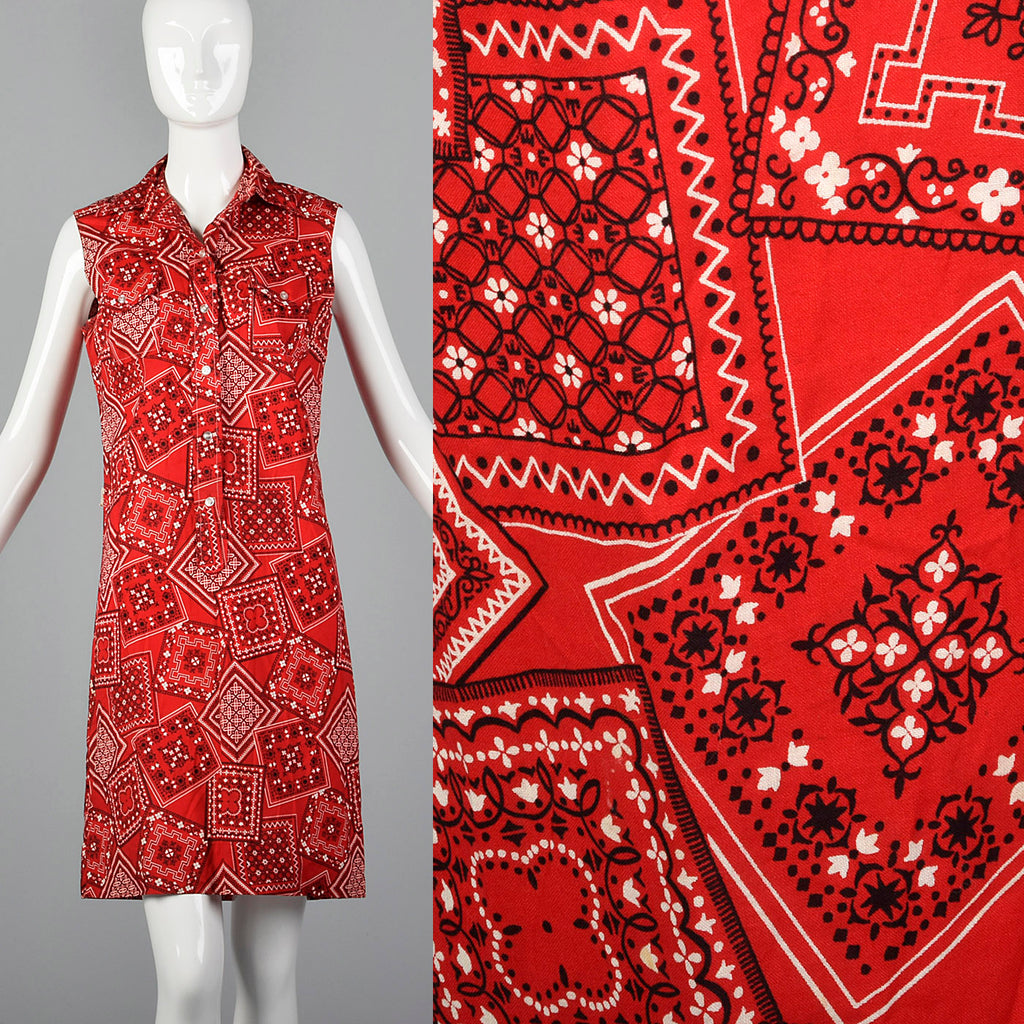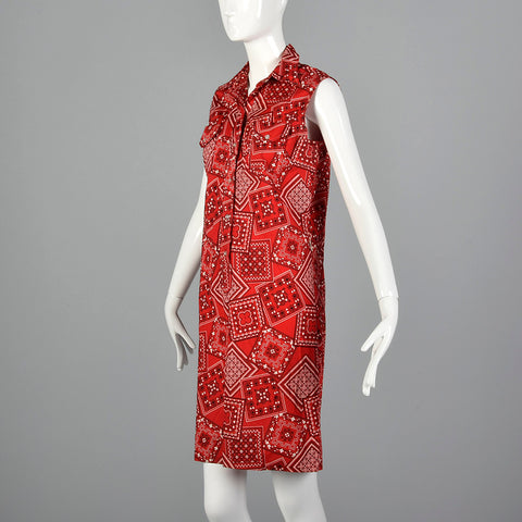 1960s Red Bandana Print Dress