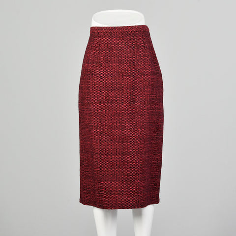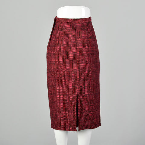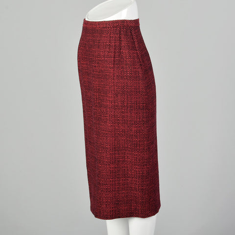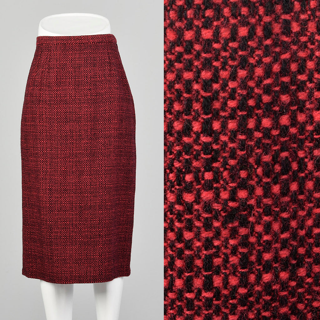 This listing is for 1 skirt. Textile is 100% virgin wool tweed in red and black. A classic pencil skirt with a slit at the back of the hem. The sli...