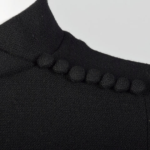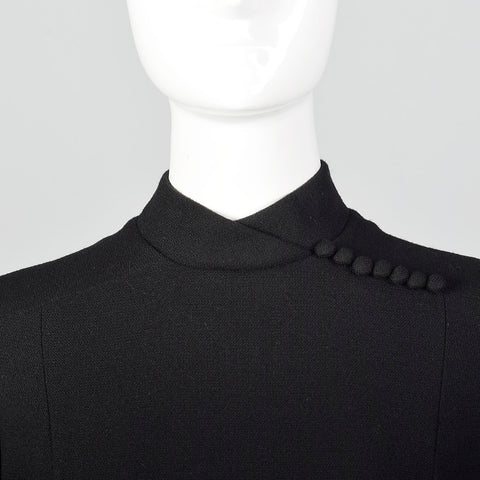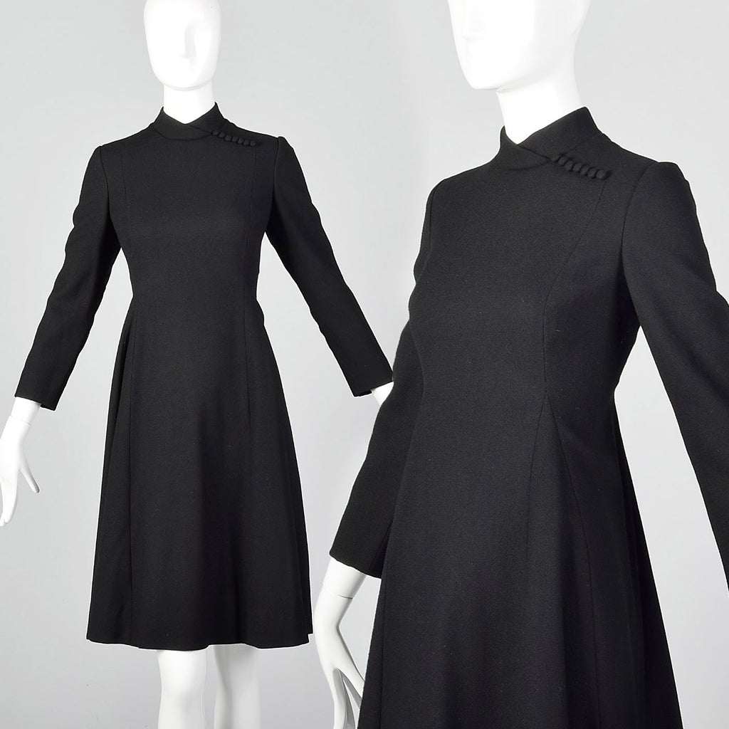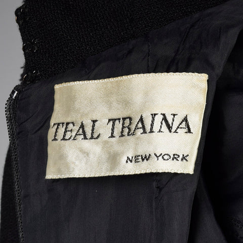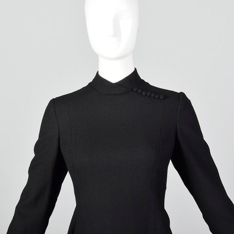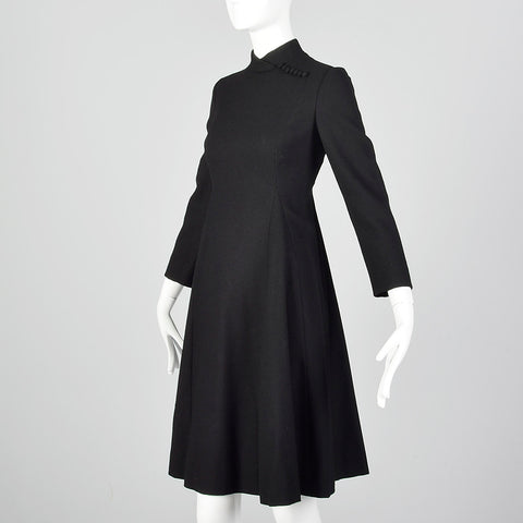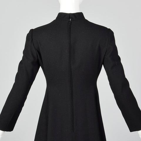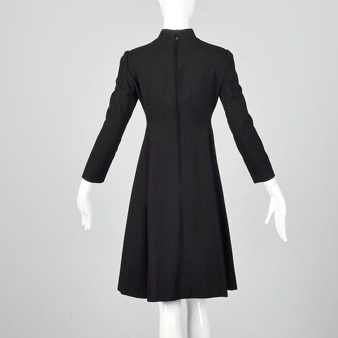 1960s Teal Traina Long Sleeve Babydoll Dress in Black Wool